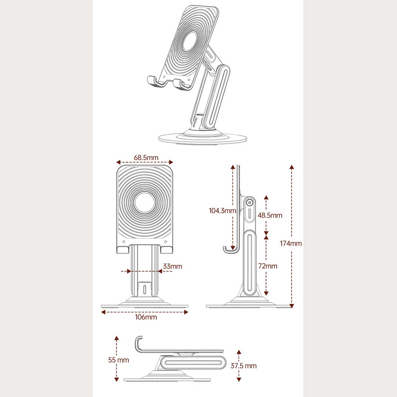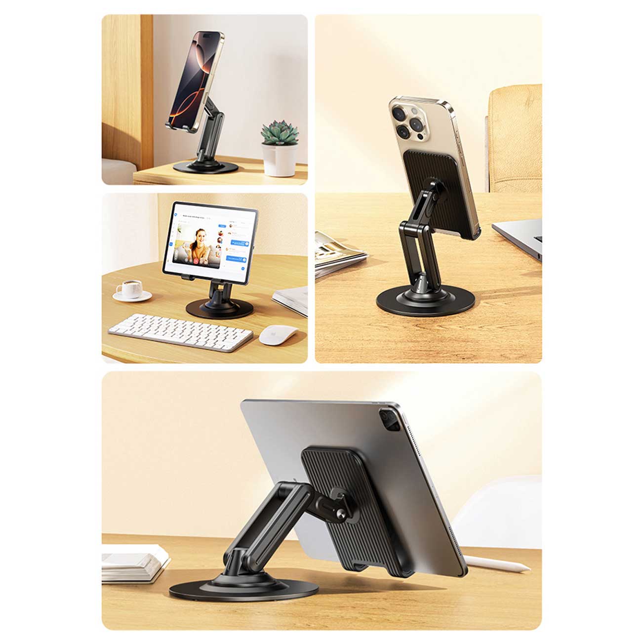 هولدر گوشی موبایل و تبلت رومیزی فلزی تاشو با چرخش 360 درجه بونروی L08
