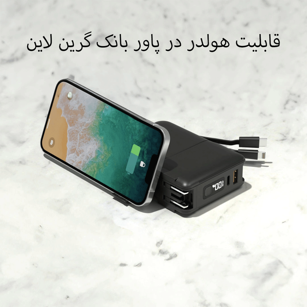 پاور بانک 10000 تایپسی، یواسبی و لایتنینگ 20 وات گرین لاین GNTRVB10KBK