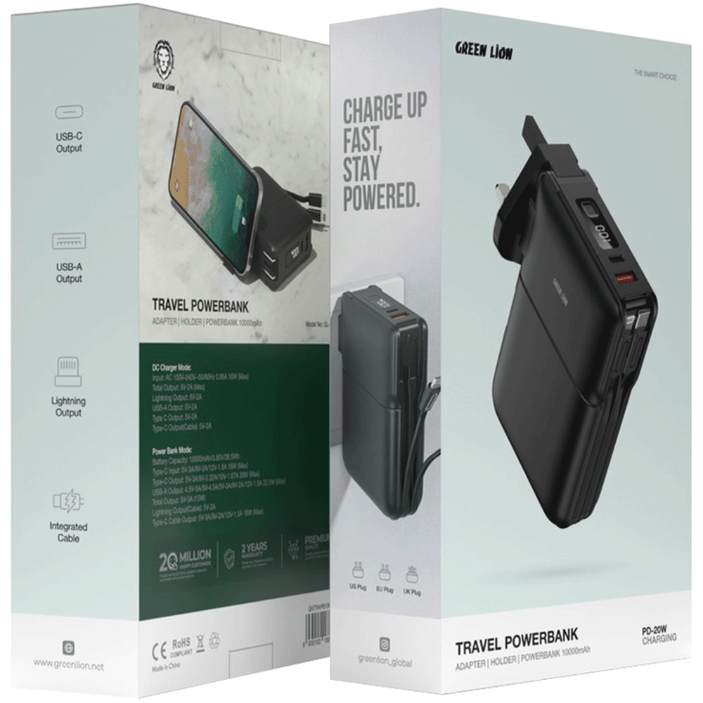 Green Lion Travel Power Bank 10000mAh / Adapter / Holder - GNTRVB10KBK