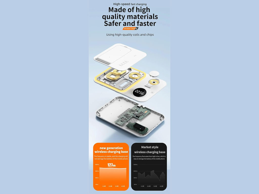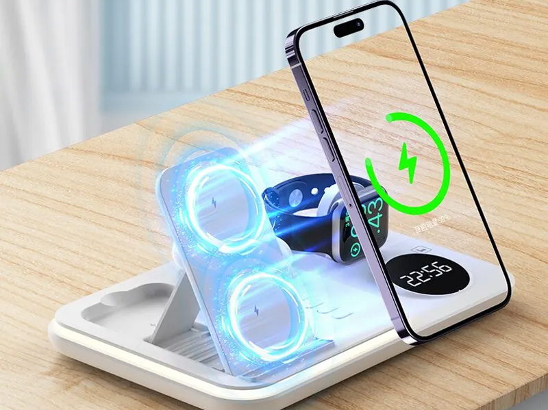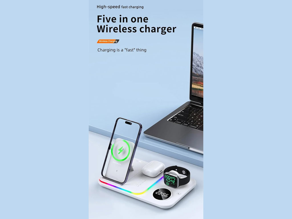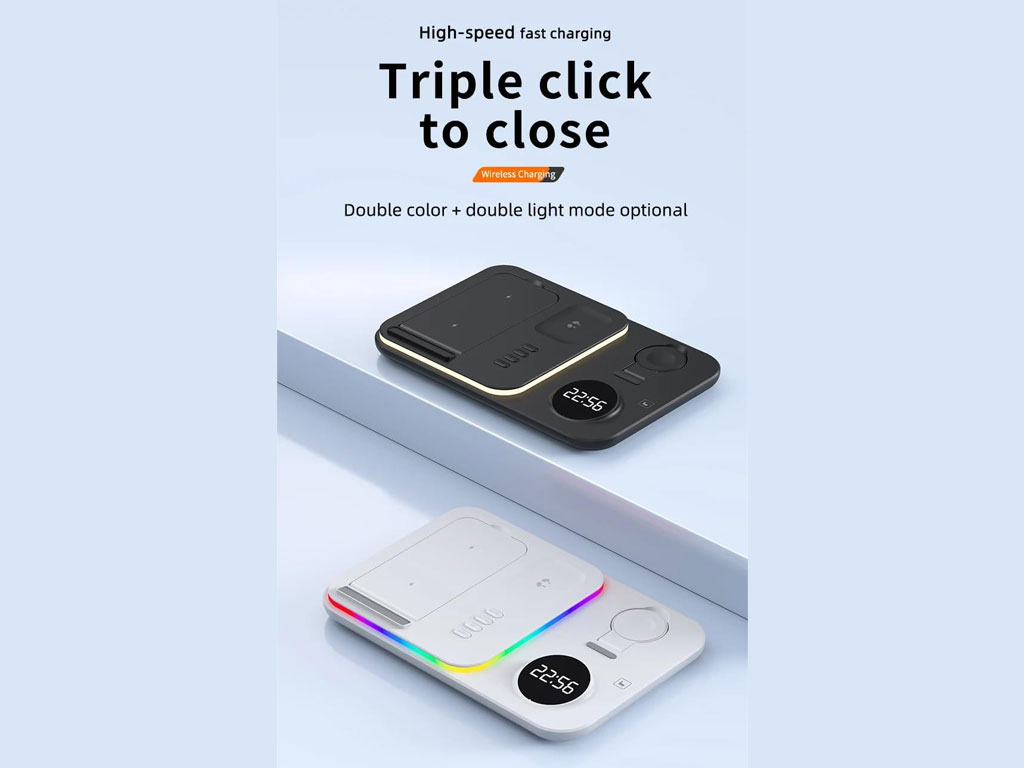 شارژر وایرلس رومیزی، هولدر موبایل، چراغ خواب و ساعت دیجیتال 5 کاره A82 5-in-1 Wireless Charging Dock