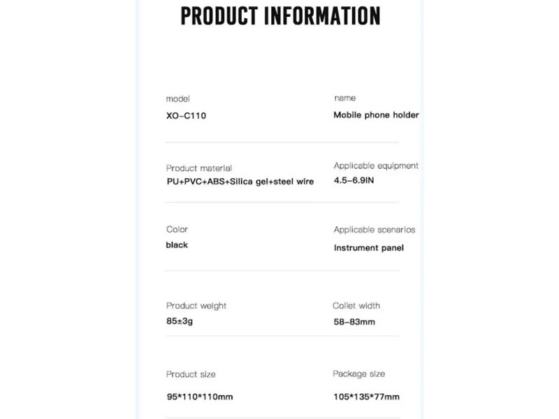 مشخصات هولدر موبایل داخل خودرو ایکس او C110 | |
