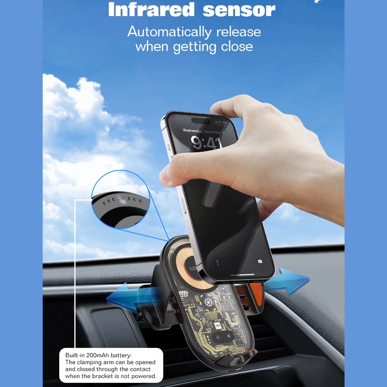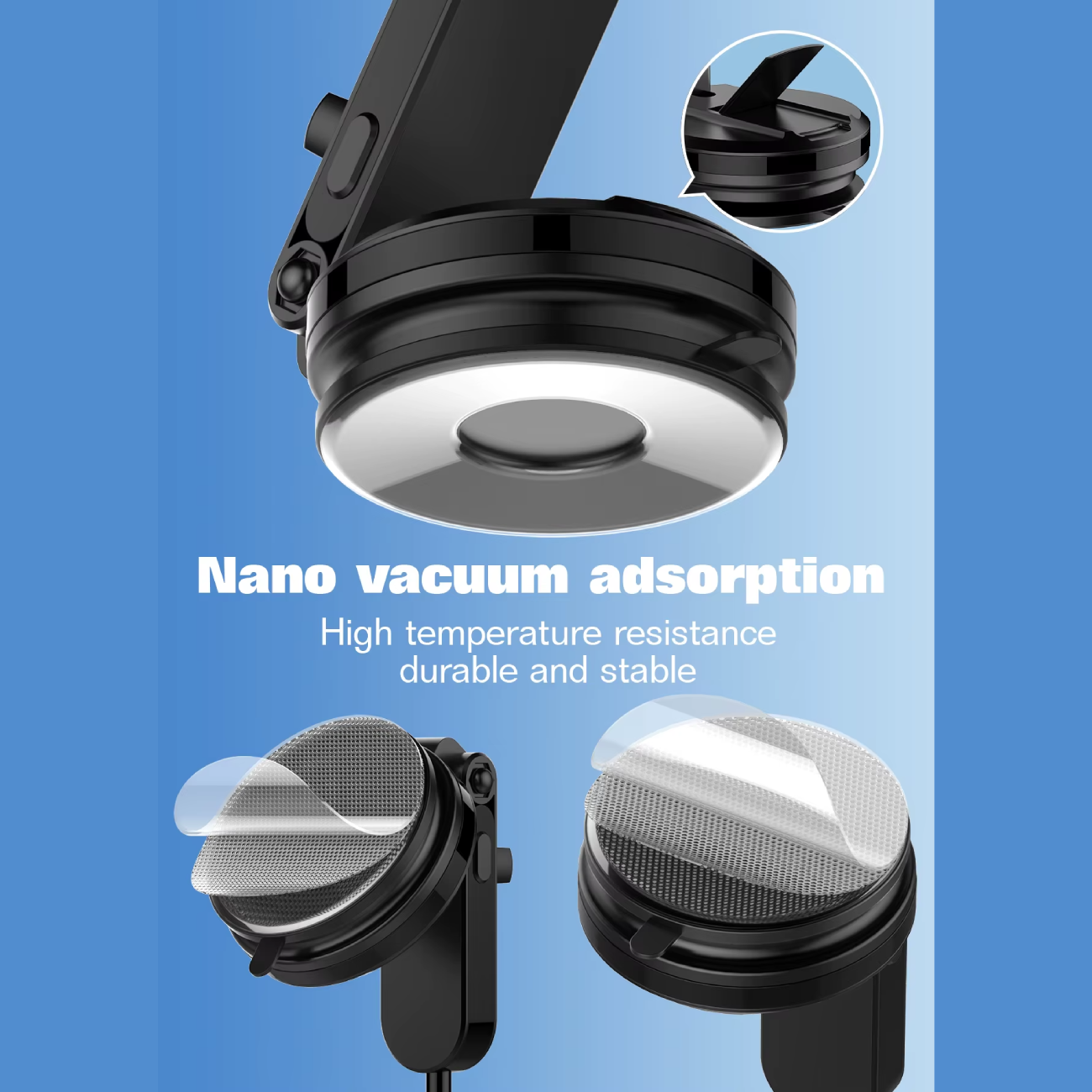 سایر قابلیت ها | - ورودی تایپ سی: 5V/3A, 9V/2A, 12V/1.5A - خروجی وایرلس: 5W/7.5W/10W/15W - طراحی غیرلغزشی با چسب نانو - تنظیم زاویه 180 درجه و 360 درجه - مجهز به باتری داخلی 200 میلیآمپر ساعت - چسبندگی و مکش قوی |