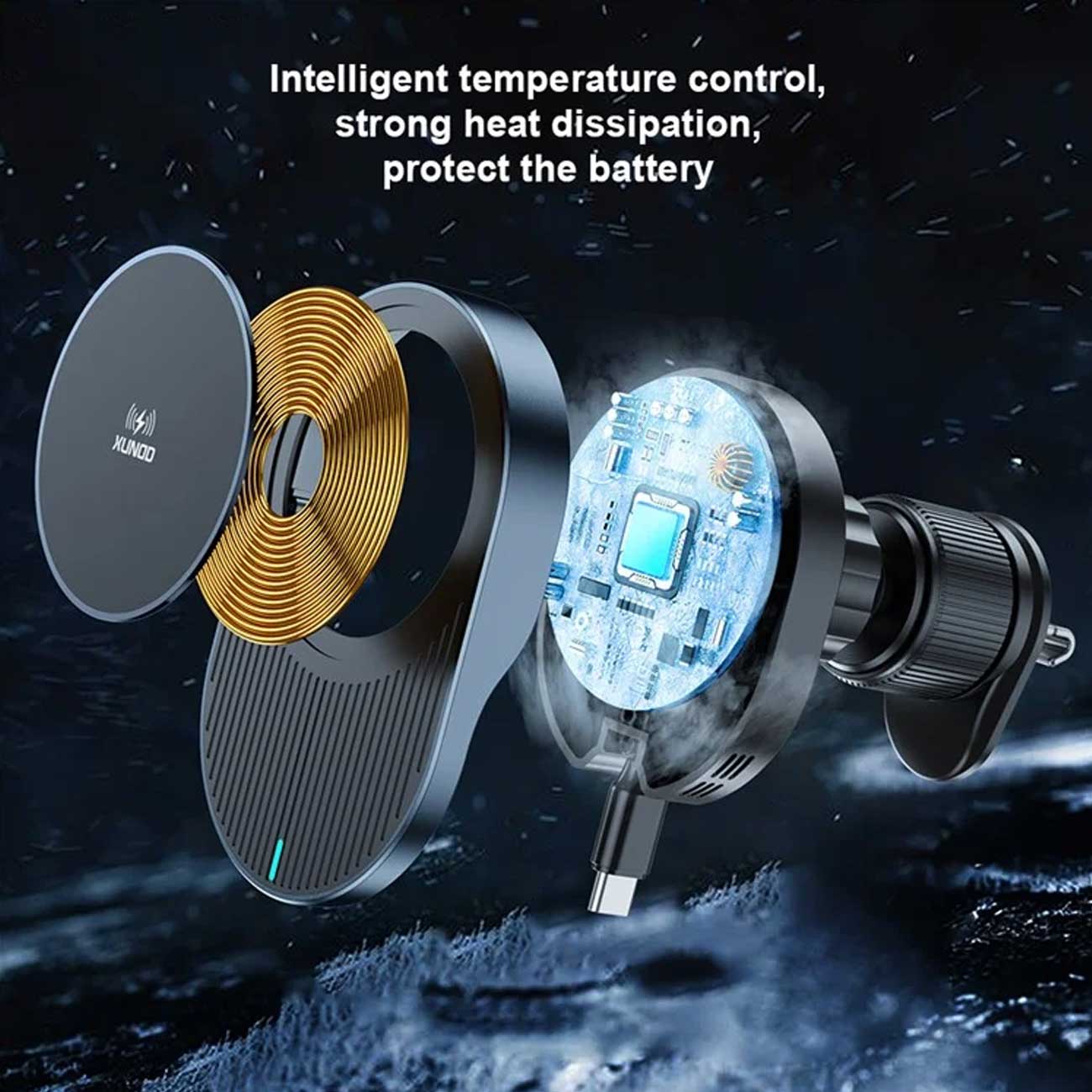 XUNDD XDCH-076 15W Wireless Car Phone Holder with Retractable Cable