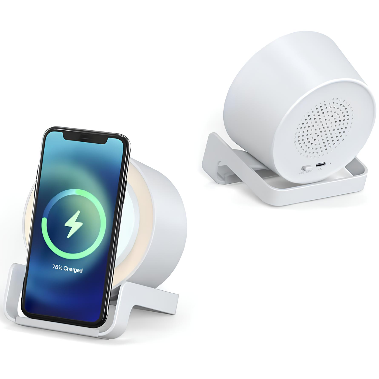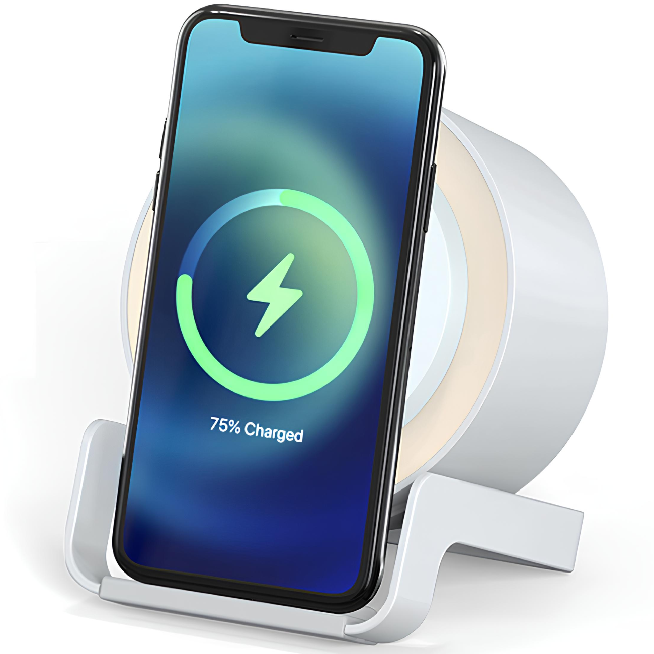 سایر ویژگیها | - 4 کاره شارژ بیسیم، اسپیکر بلوتوثی، چراغ خواب و پایه تلفن همراه - شارژ ایمن با سیستم حفاظتی در برابر شارژ بیش از حد - امکان شارژ گوشی به صورت افقی و عمودی - تعداد درگاه خروجی: یک پورت وایرلس - فناوری شارژ سریع: شارژ بی سیم QI - نوع کابل همراه: کابل یو اس بی به تایپ سی - دارای دکمههای کنترلی و سوئیچ لمسی |