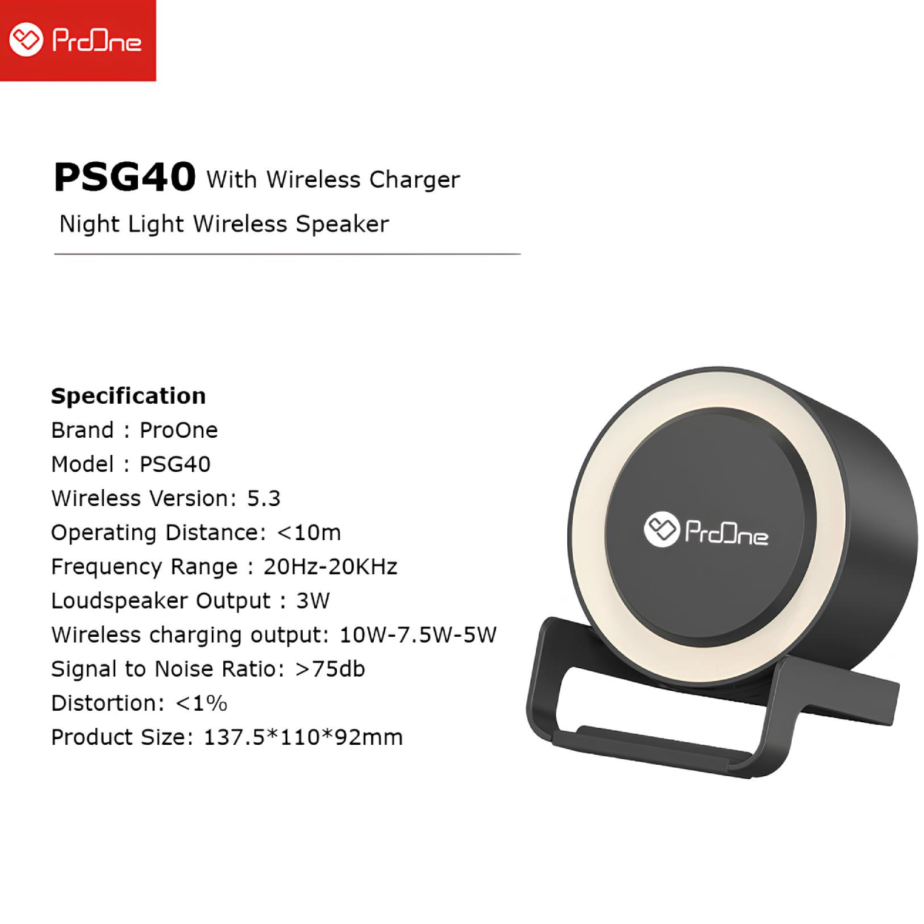 اسپیکر بلوتوثی، شارژر بی سیم، چراغ رومیزی و پایه نگهدارنده گوشی پرووان PSG40