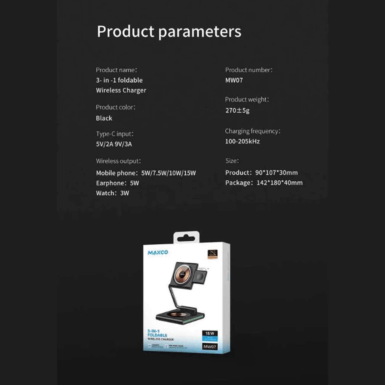 Maxco MW07 3-in-1 Foldable Wireless Charger 15W