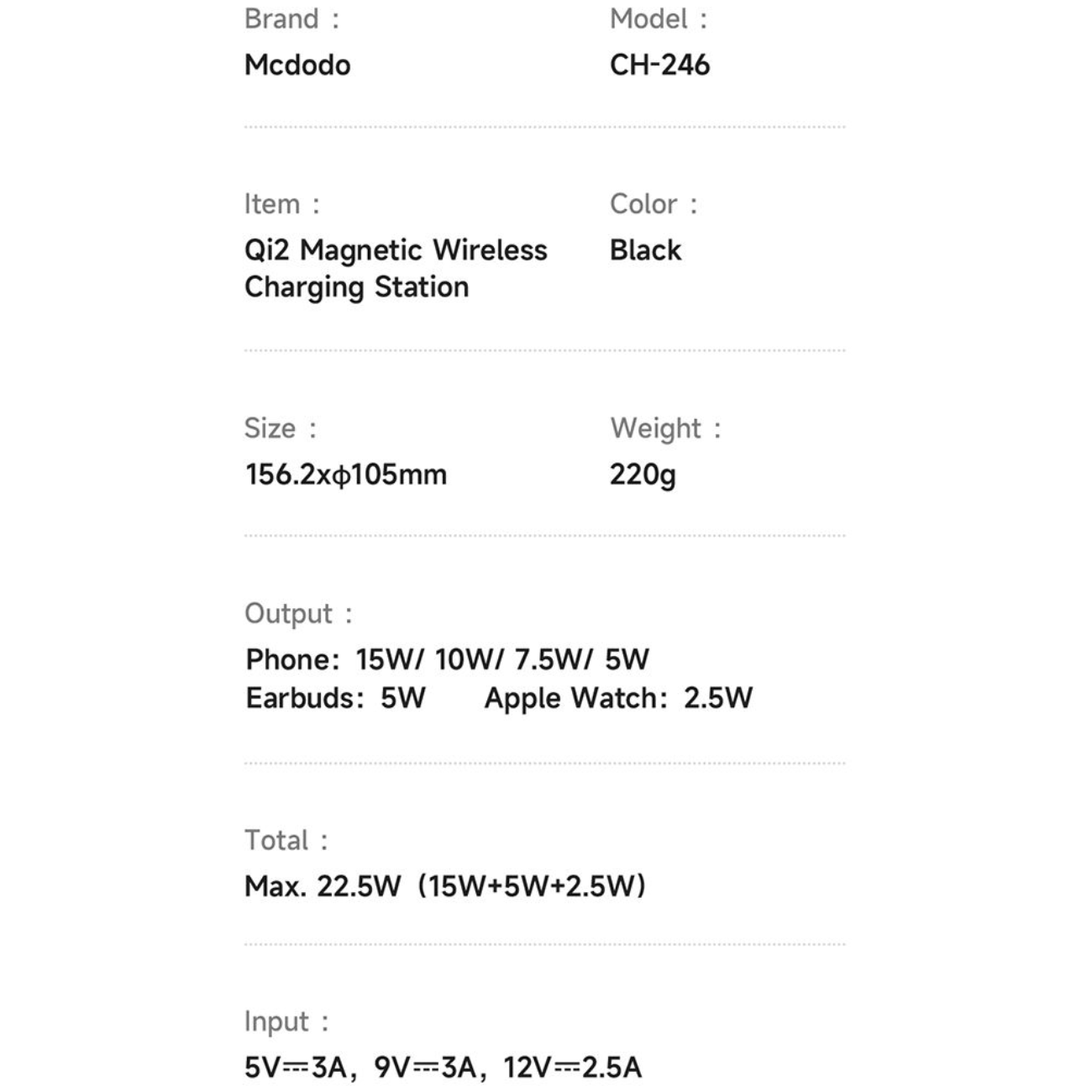 Mcdodo MagQ Qi2 Magnetic Wireless Charging Station CH-2462