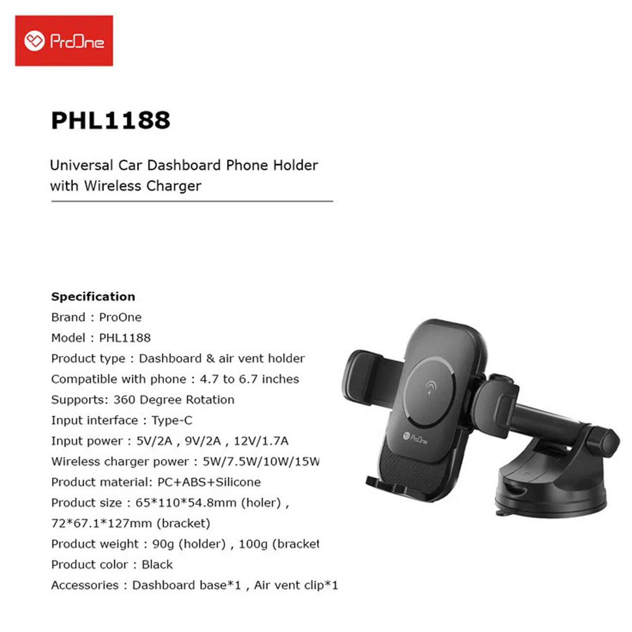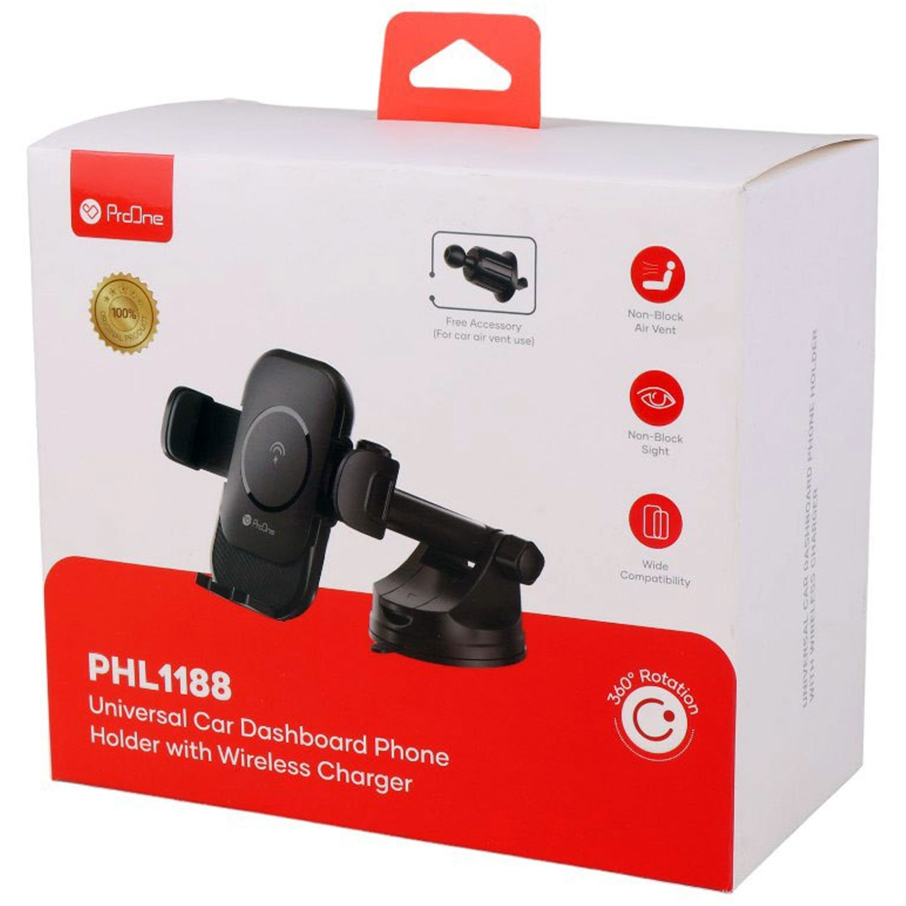 ProOne PHL1188 Universal Car Dashboard Phone Holder with Wireless Charger