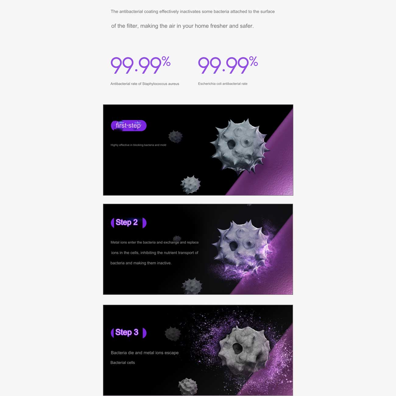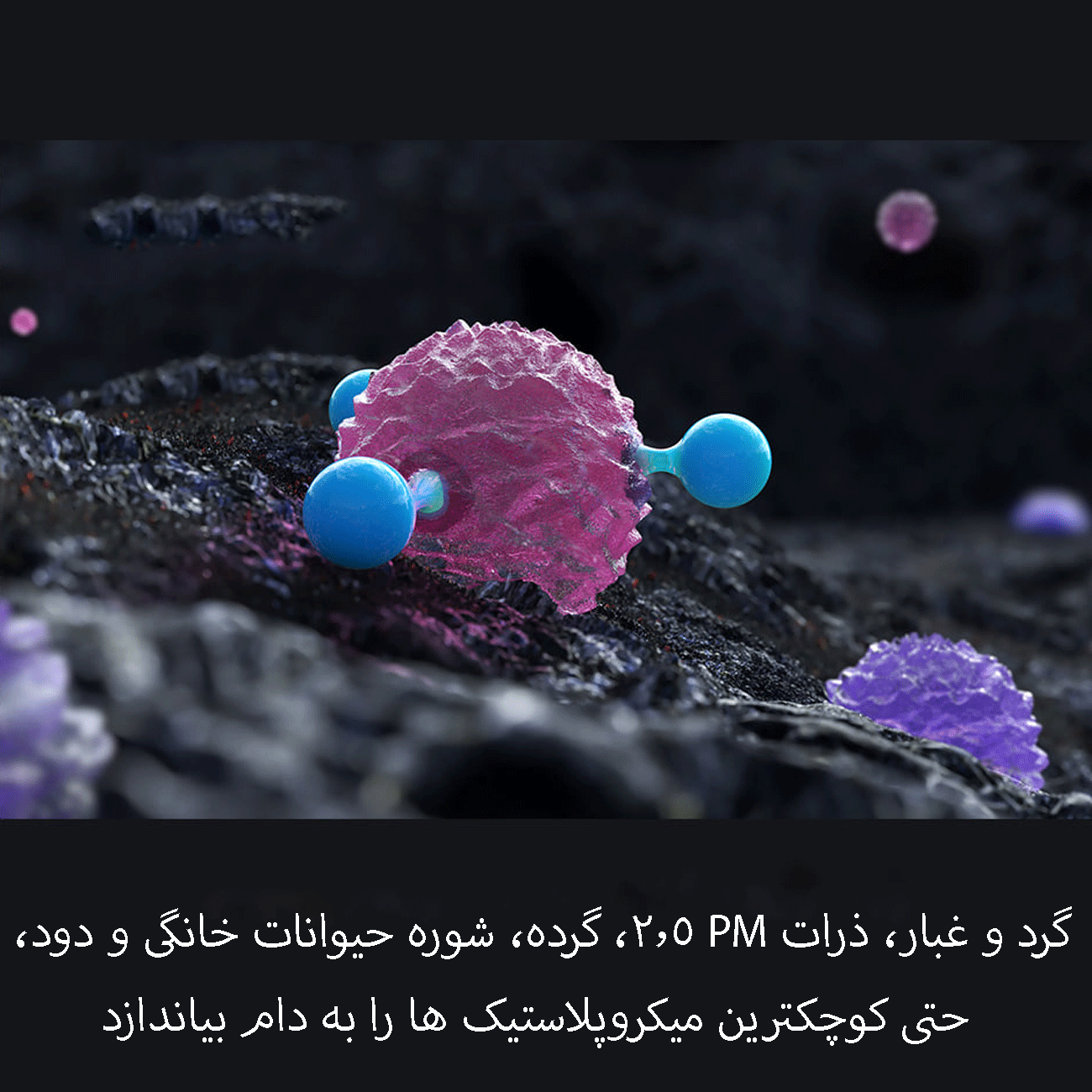 حذف ذرات | گرد و غبار، ذرات PM 2.5، گرده، شوره حیوانات خانگی و دود، حتی کوچکترین میکروپلاستیک ها |