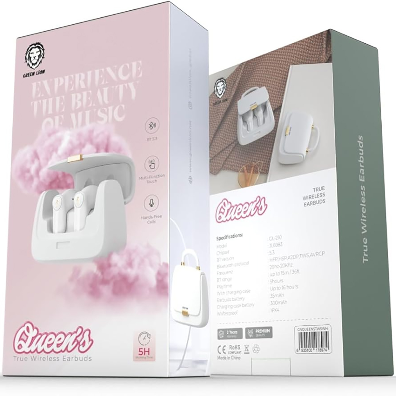 Green Lion GL-210 Queen's True Wireless Earbuds GNQUEENSTWSWH