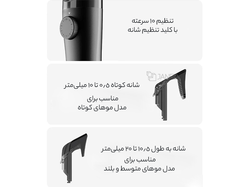 تنظیم 10 سرعته با کلید تنظیم شانه | |
