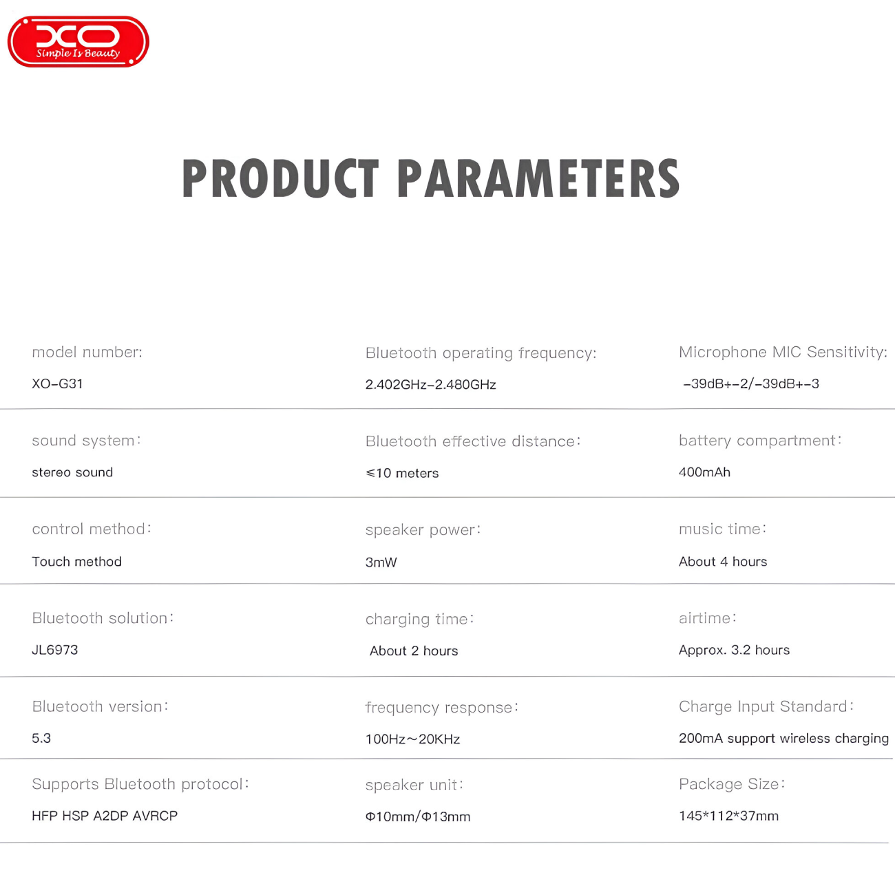 XO-G31 True Wireless Stereo Earbuds
