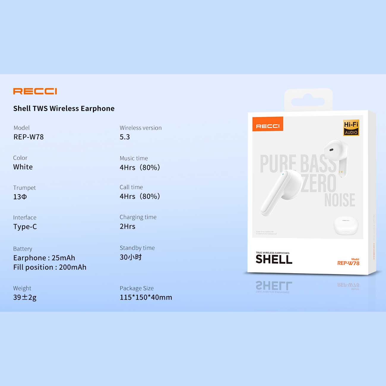 Recci REP-W78 Shell Serisi TWS Wireless 5.3 Bluetooth Kulaklık