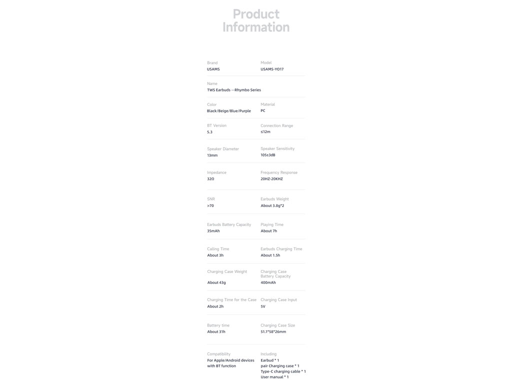 هندزفری بلوتوثی 5.3 یوسامز USAMS YO17 TWS Earbuds Bluetooth