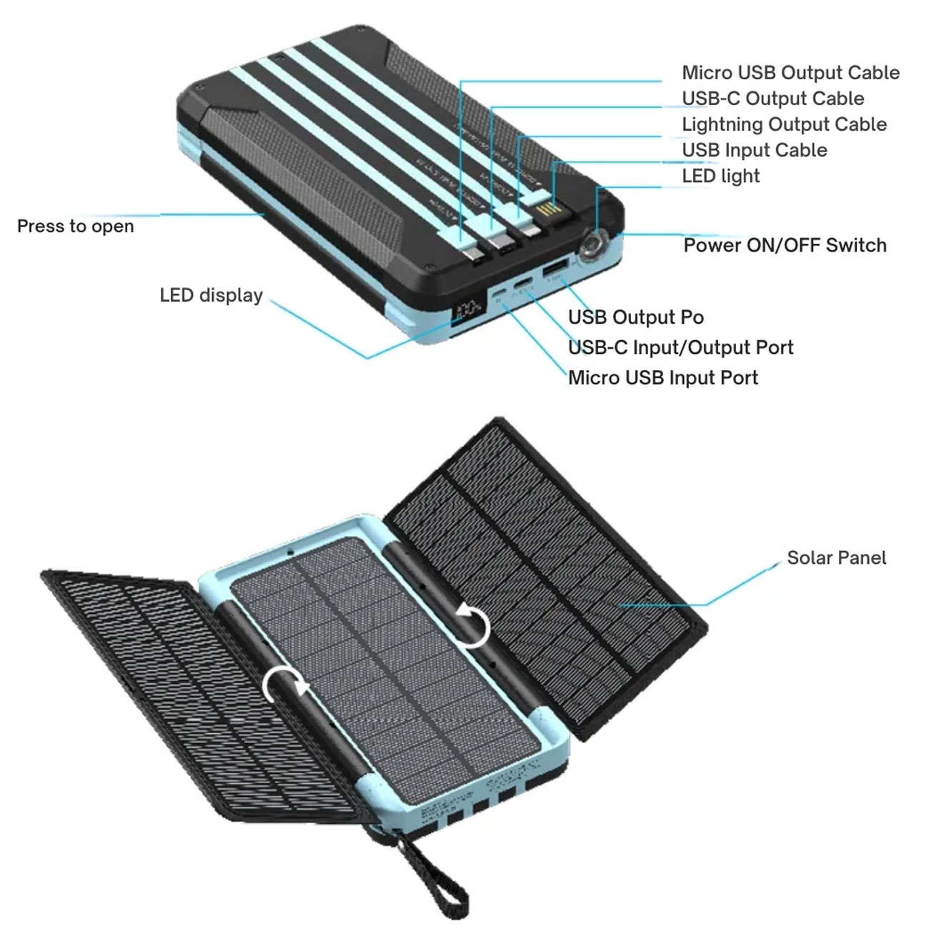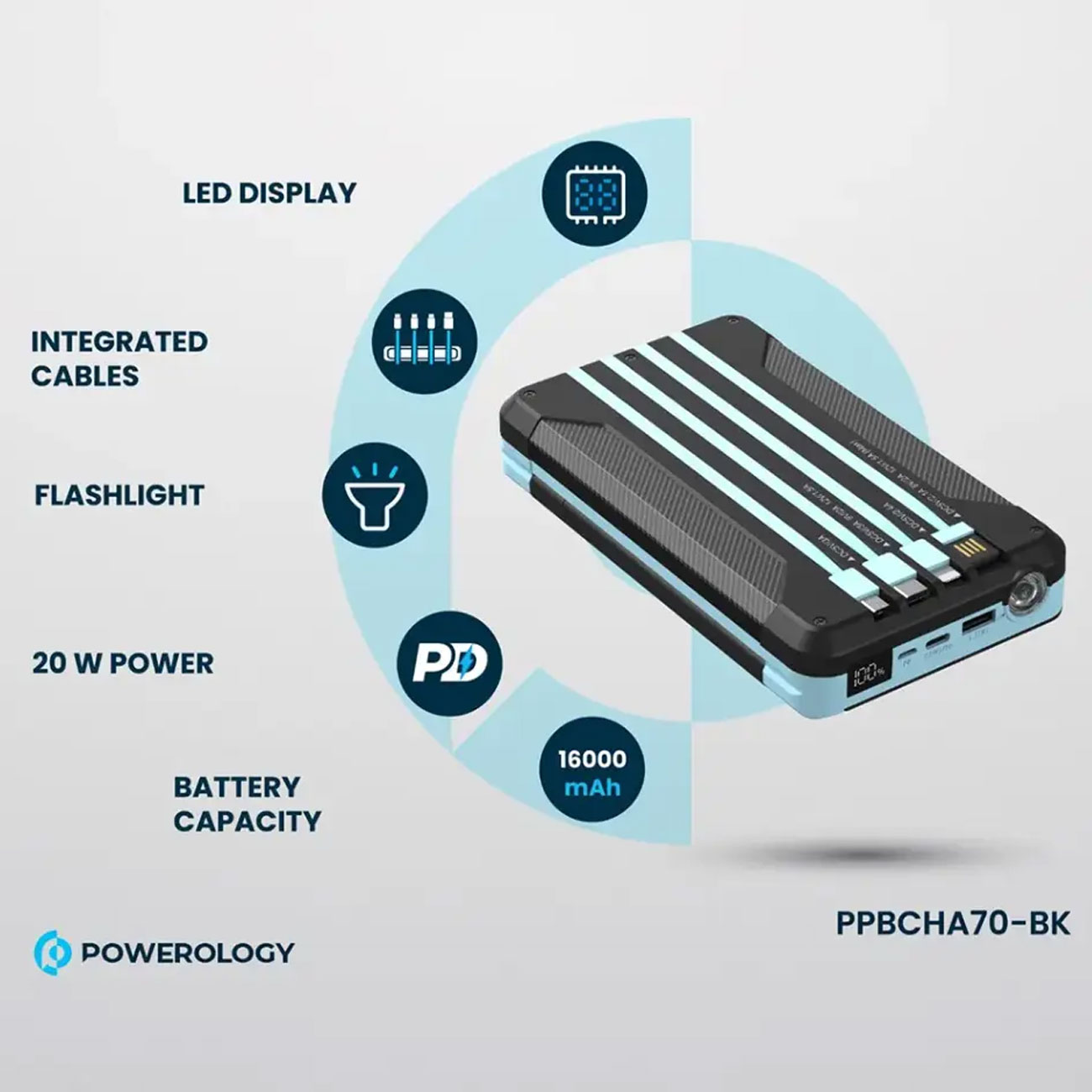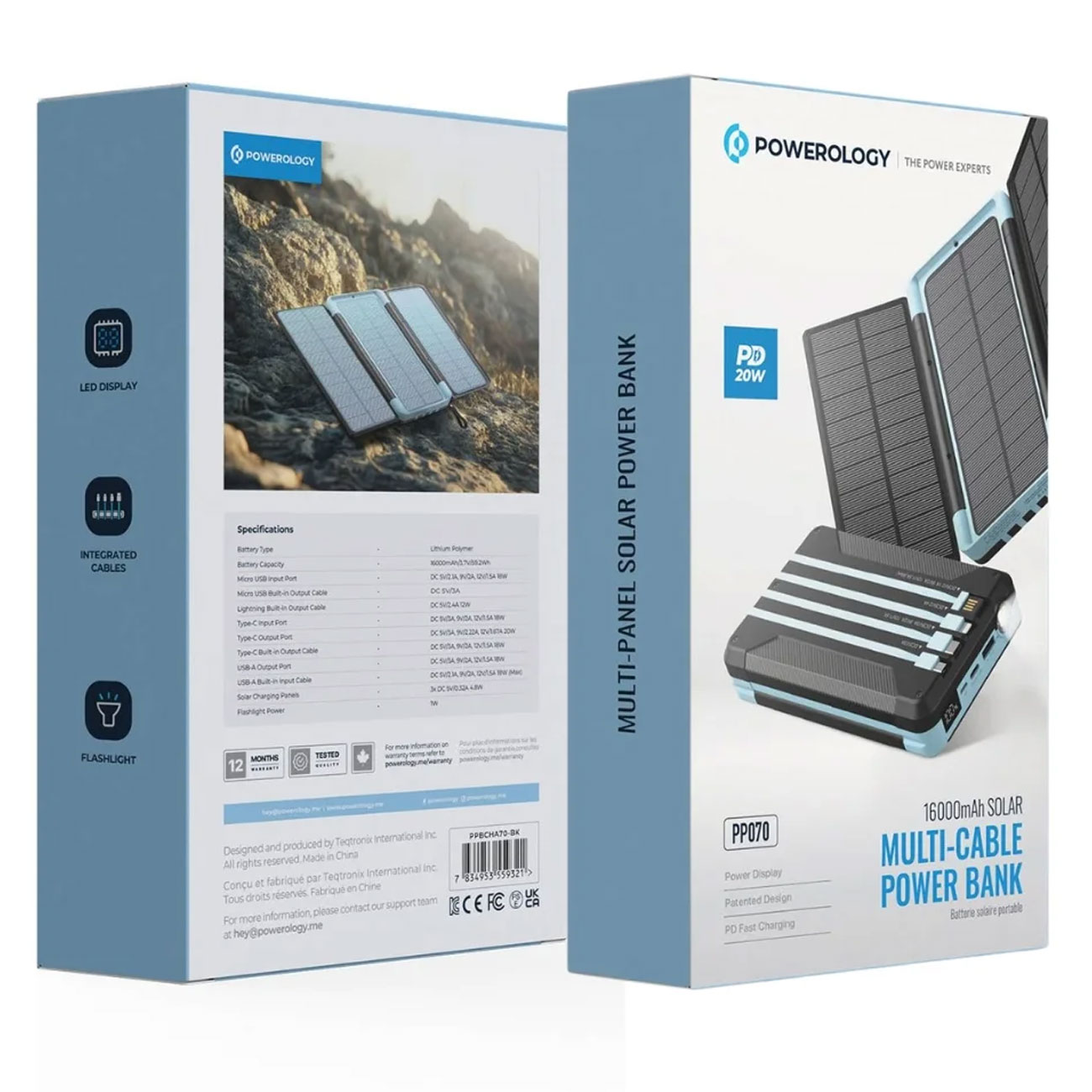 Powerology 16000mAh Solar Multi-Cable Power Bank PP070