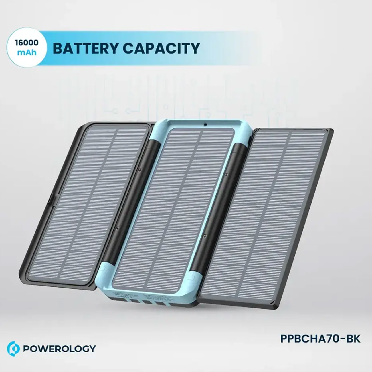 پاوربانک خورشیدی تایپسی و یواسبی و لایتنینگ 20 وات 16000 میلیآمپرساعت پاورولوژی PP070-PPBCHA70-BK