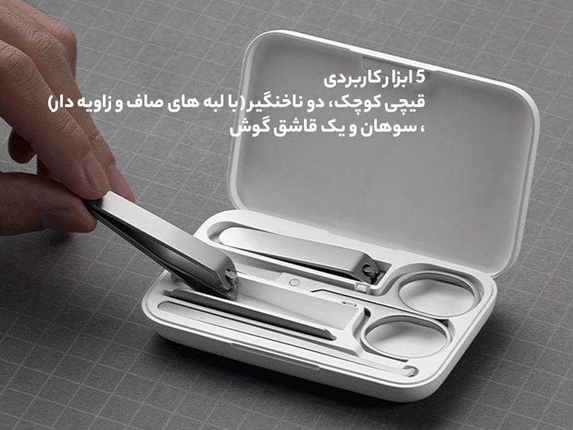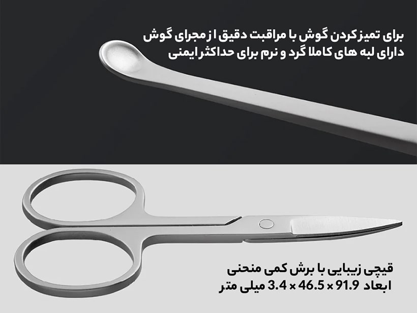 اقلام داخل بسته | دو ناخنگیر, سوهان, قیچی کوچک, یک قاشق گوش |