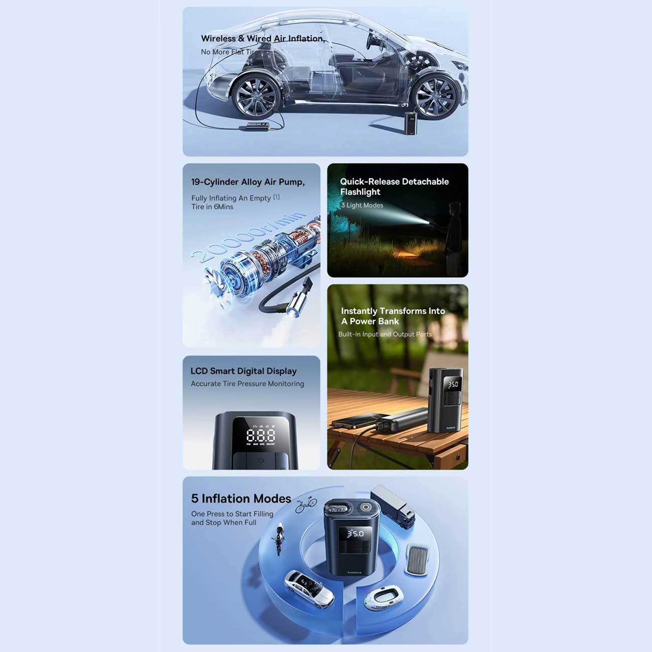 پمپ باد شارژی، چراغ قوه و پاوربانک بیسوس VA1 BS-CG034
