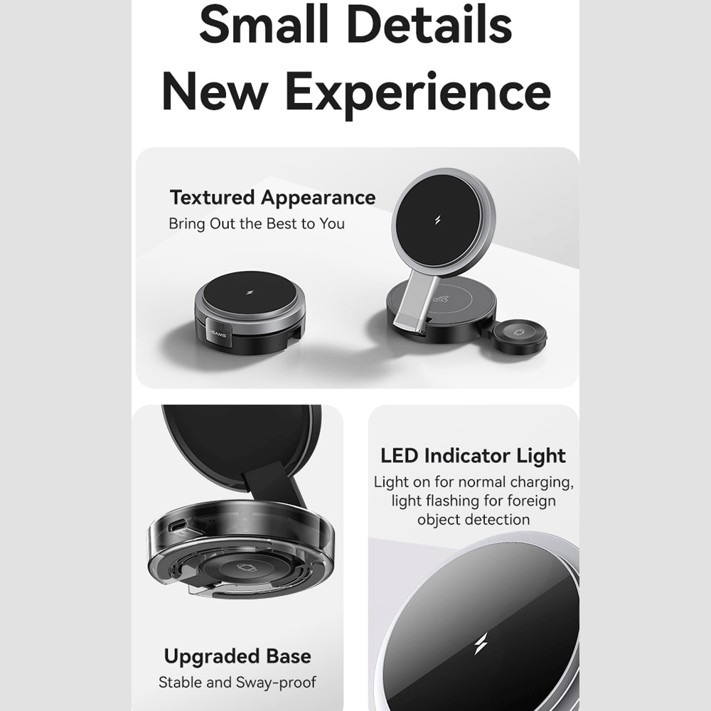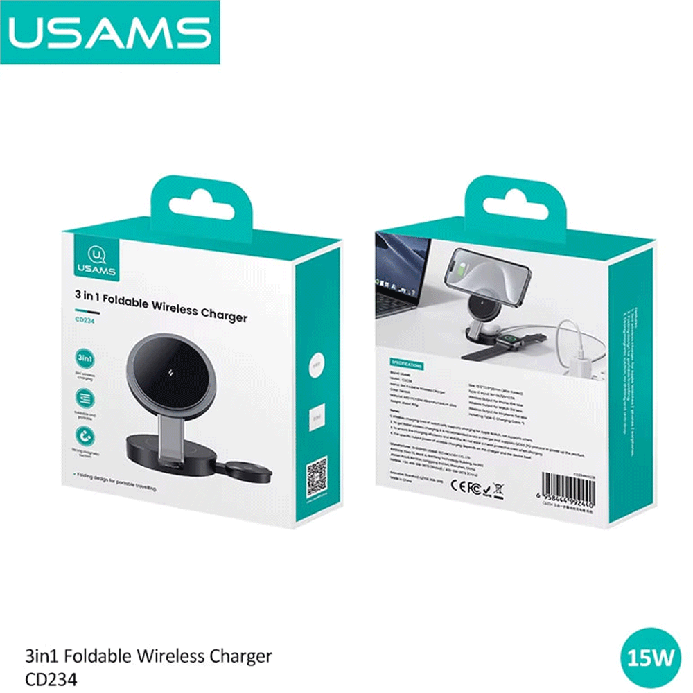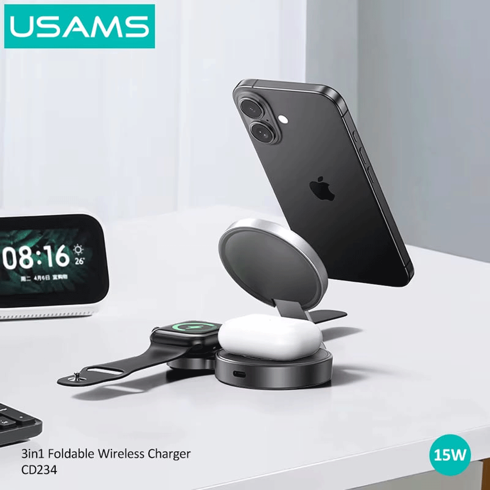 شارژر وایرلس مگنتی رومیزی تاشو 15 وات گوشی، اپلواچ و ایرپاد یوسامز CD234