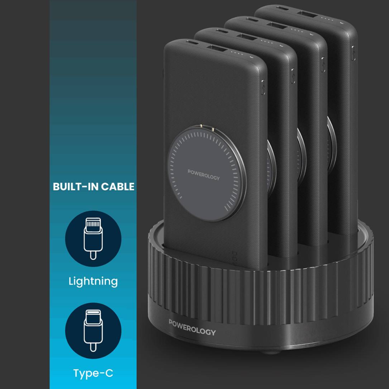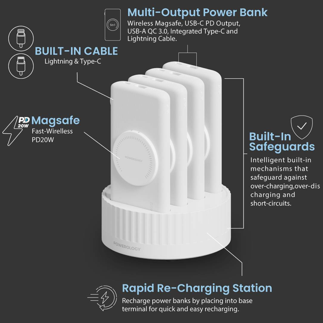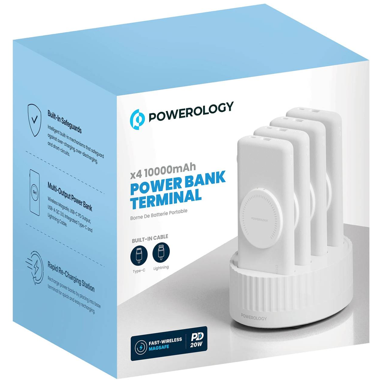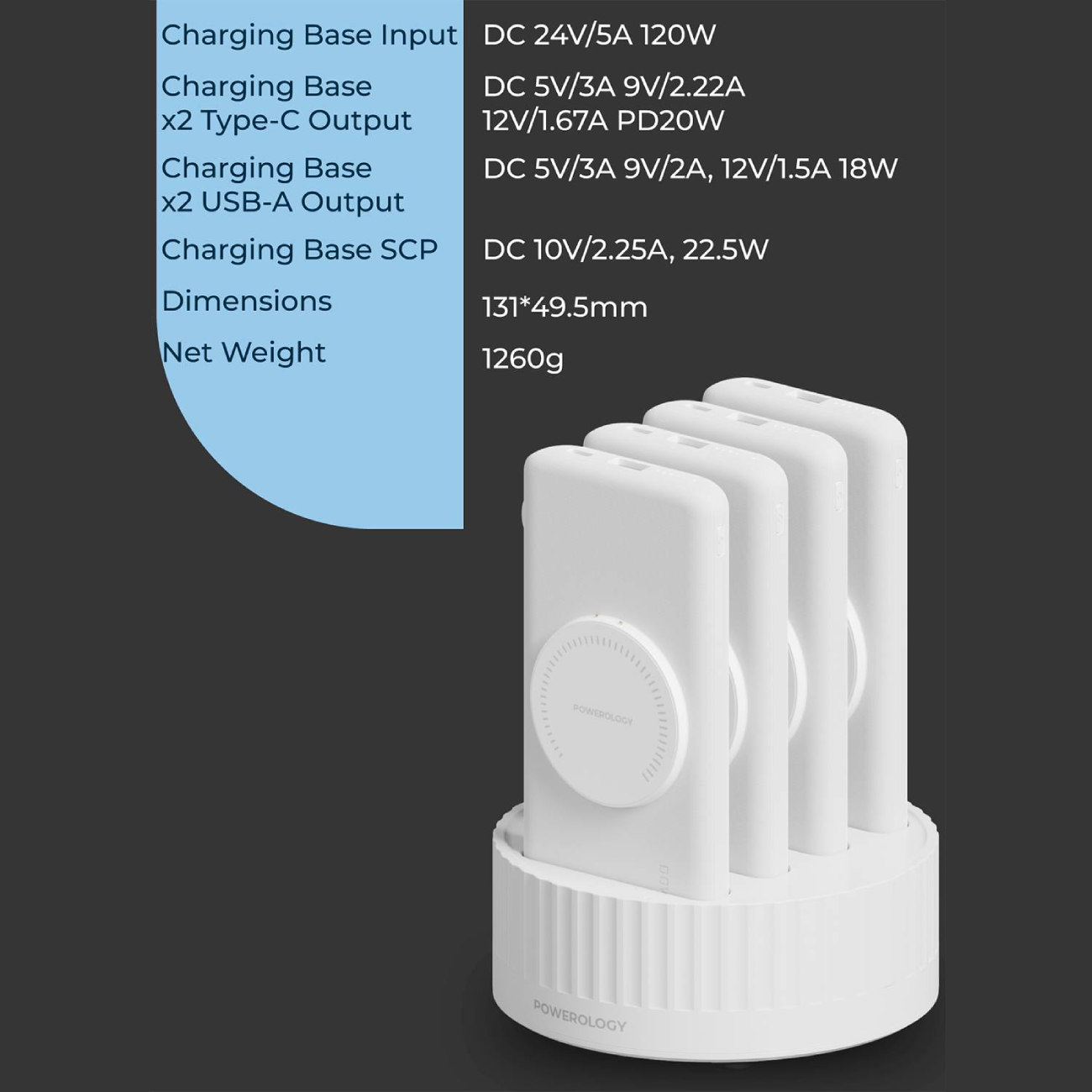 Powerology 4 in 1 Station 10000mAh PD 100W QC Wireless Power Bank PPBCHA2641WH | PPBCHA2641BK