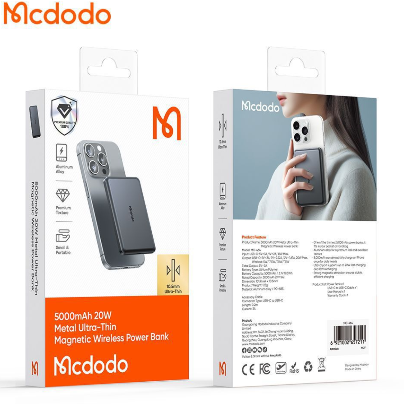 Mcdodo Metal Ultra-Thin Magnetic Wireless Power Bank 5000mAh 20W MC-464