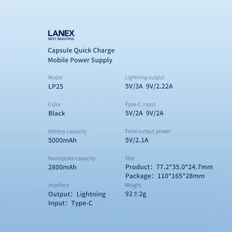 پاوربانک کپسولی 5000 میلی آمپر 20 وات لایتنینگ لانکس LP25