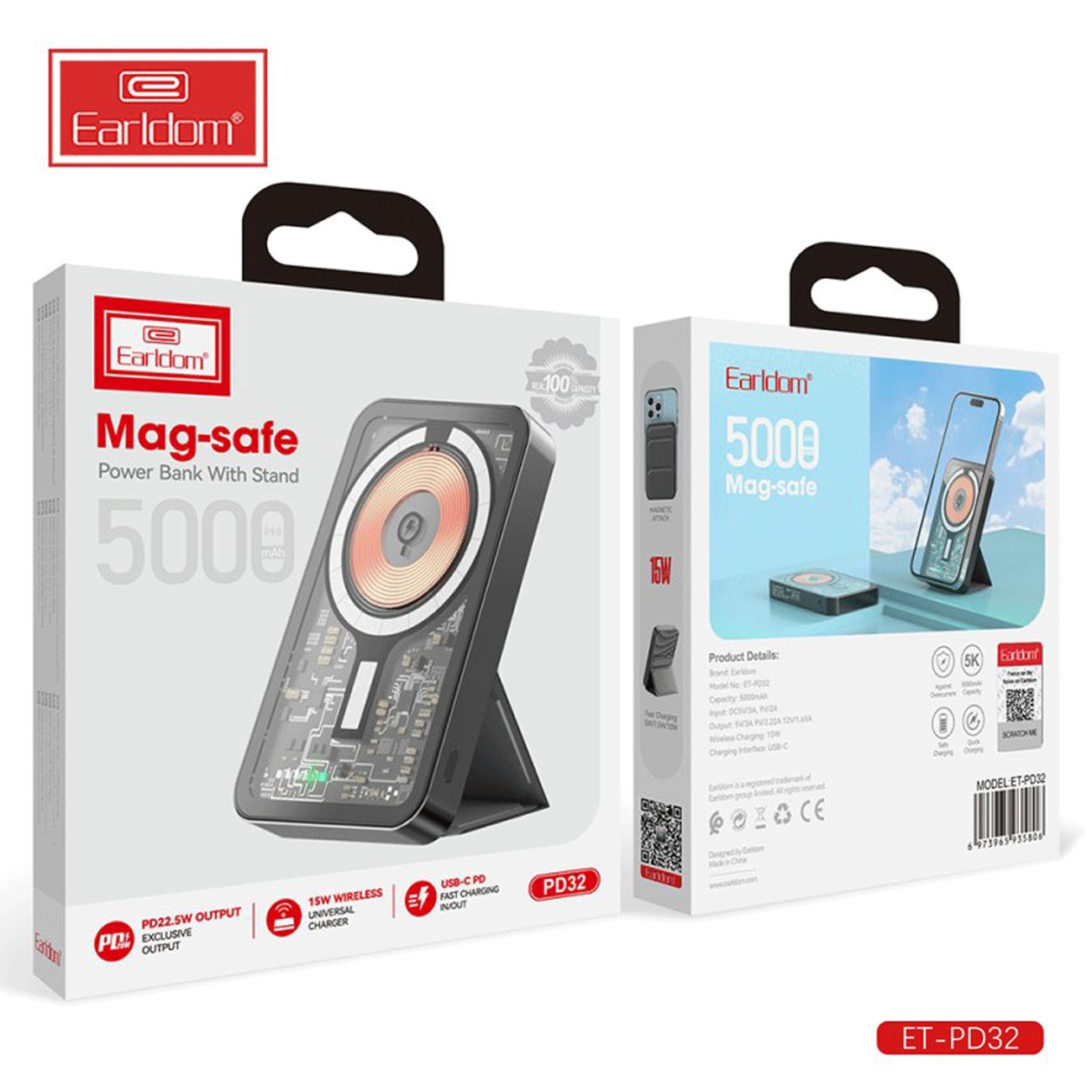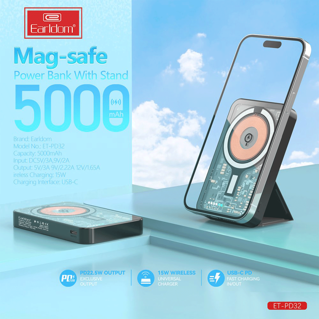 Earldom PD32 5000 Mah 22.5W Wireless Charging Stand PD Fast Charging Powerbank