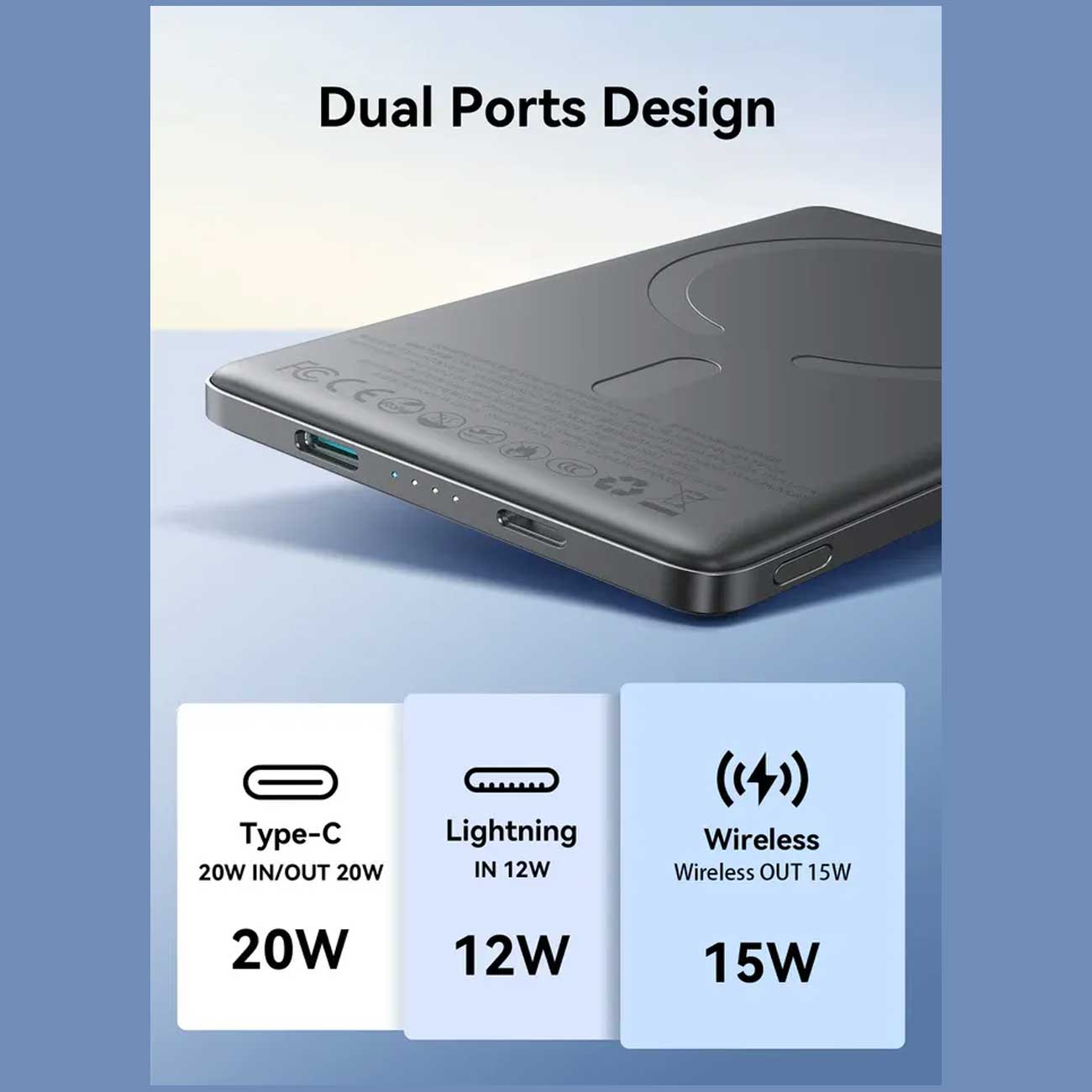 پاوربانک مگنتی 15 وات و تایپسی 20 وات 10000فوقالعاده ظریف جویروم JR-PBM08 Pro
