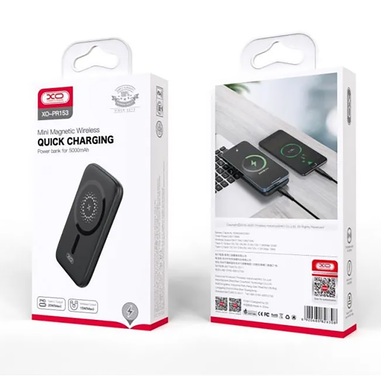 پاوربانک فست شارژ مگنتی 15 وات،تایپ سی 20 وات 5000 ایکس او PR153