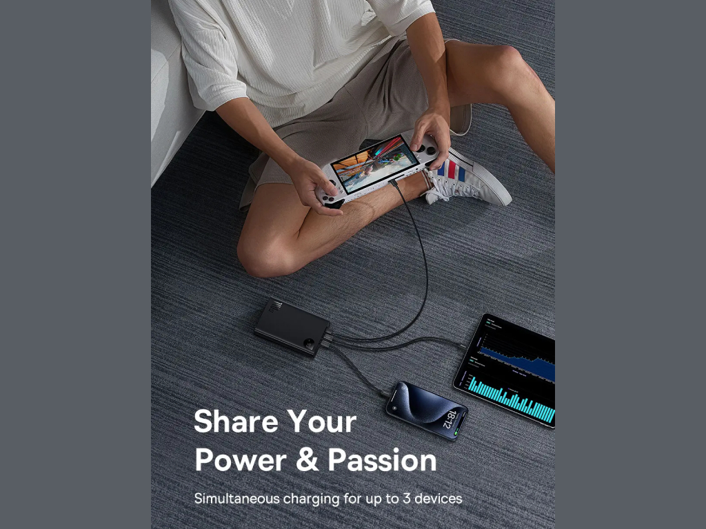 توان خروجی | Type-C1 Output: 5V/3A; 9V/3A; 12V/3A; 15V/3A; 20V/5A;28V/5A Type-C Output: 5V/3A; 9V/3A; 12V/2.5A; 15V/2A USB Output: 5V/3A; 9V/3A; 12V/2.5A; 10V/2.25A(SCP) |