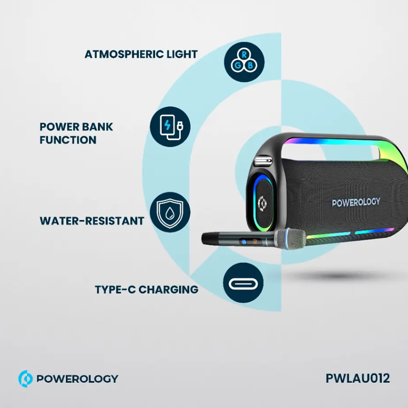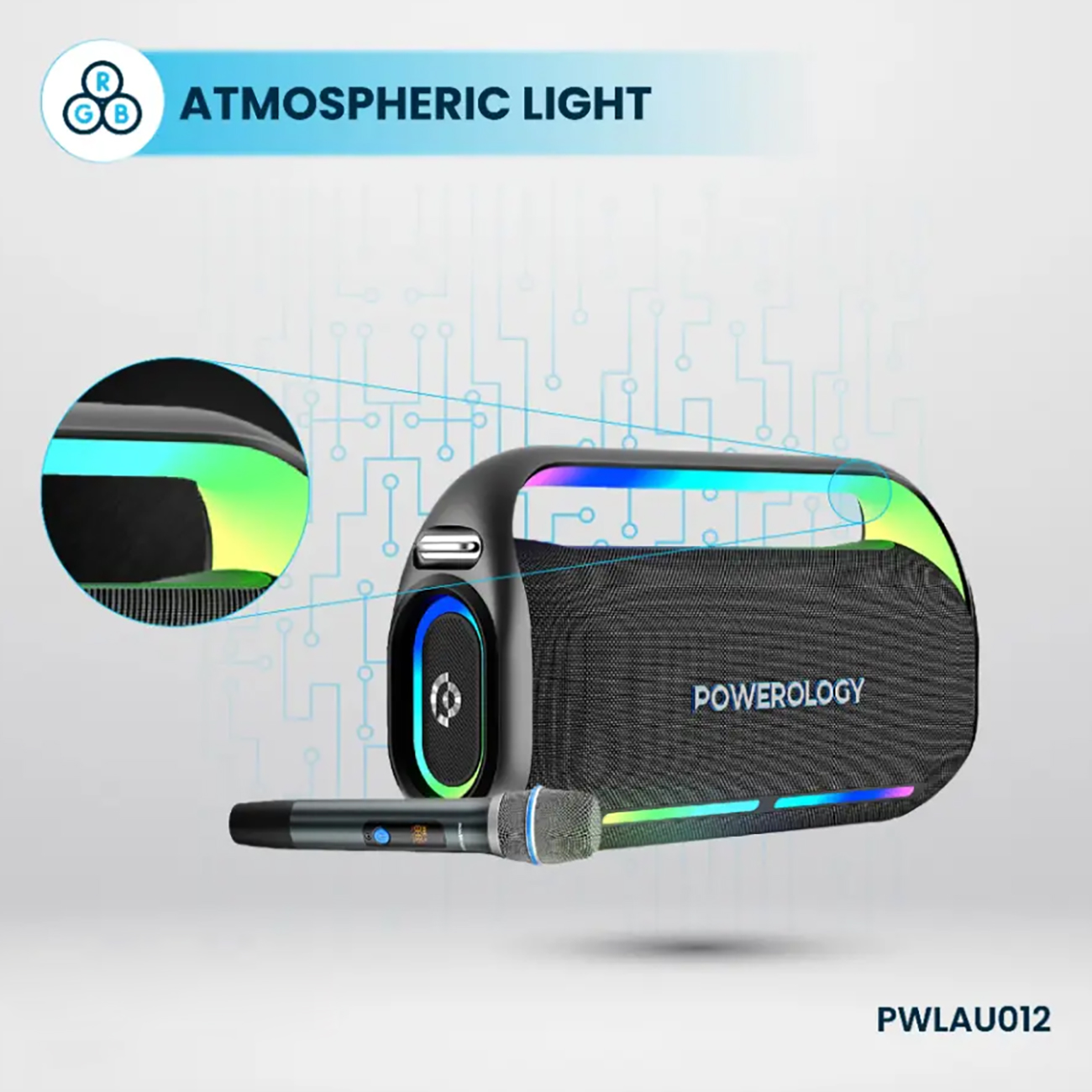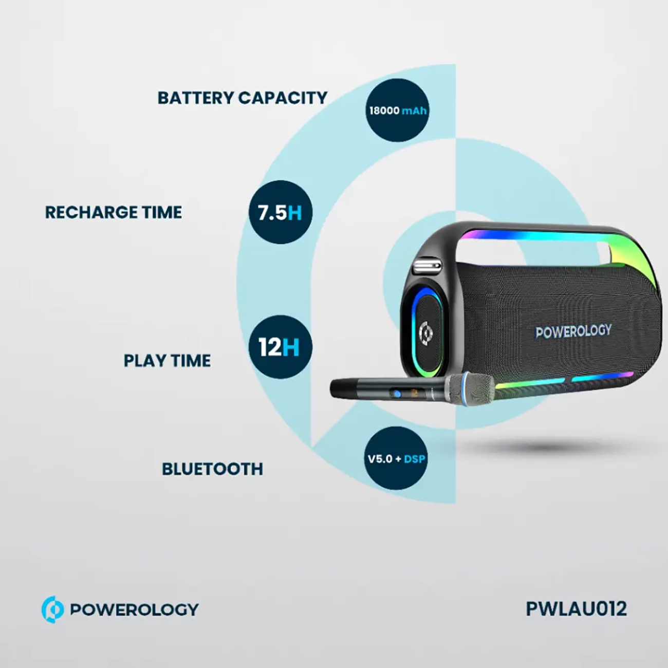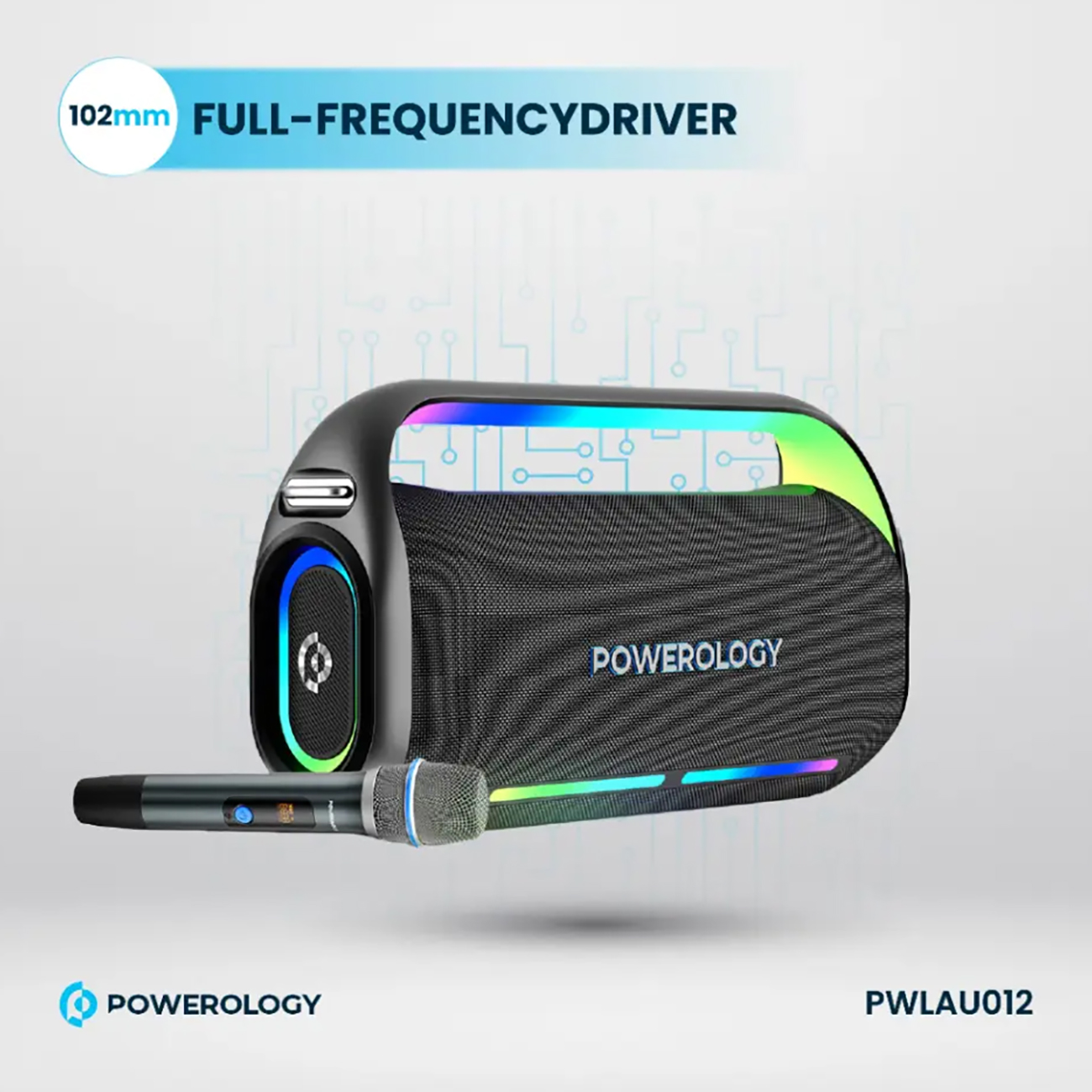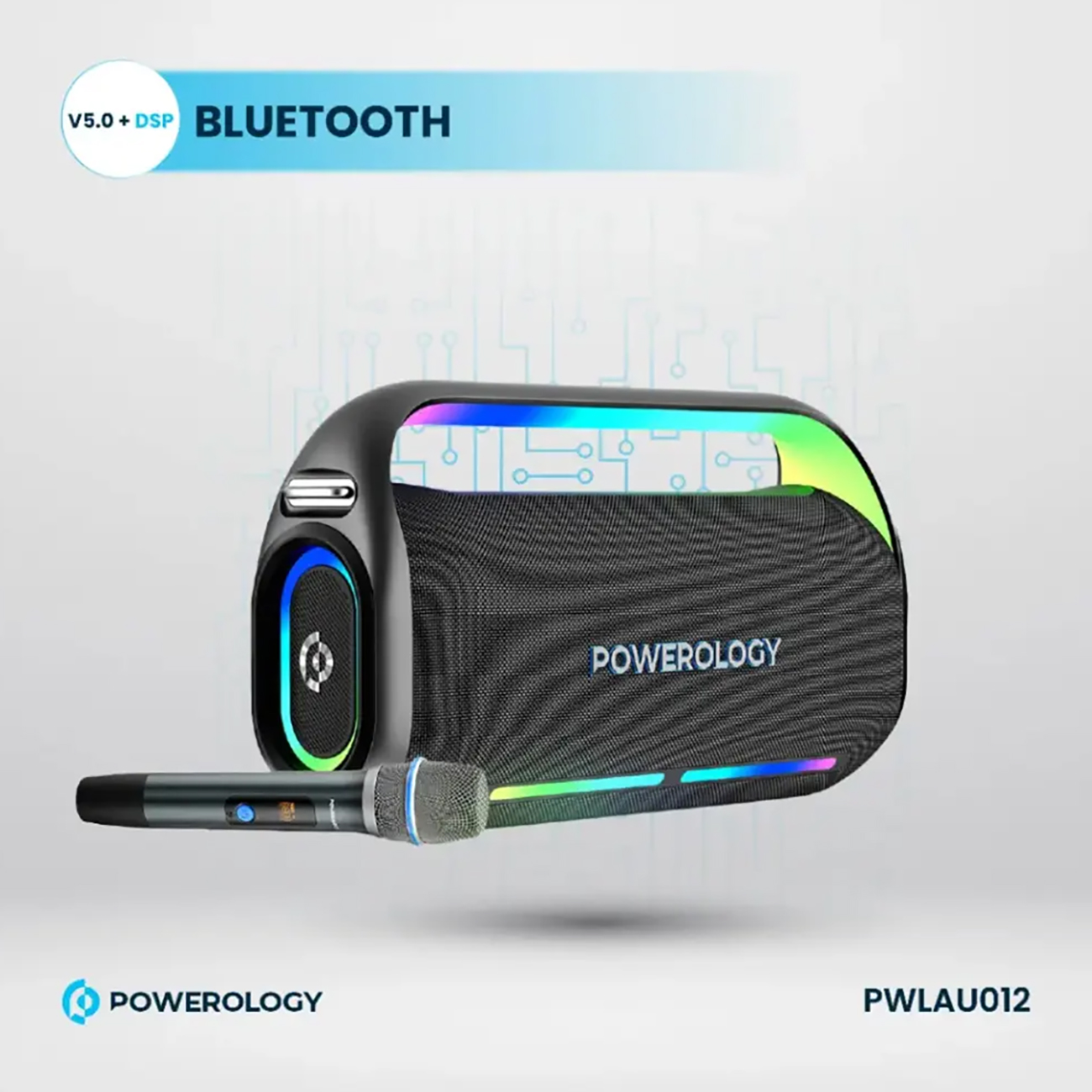 اسپیکر بلوتوثی کارائوکه همراه میکروفون پاورولوژی PWLAU012