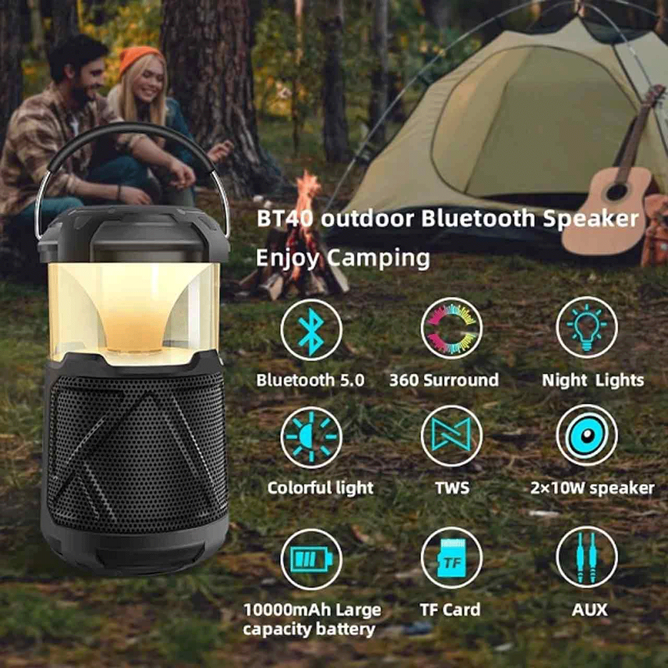 اسپیکر بلوتوثی و لامپ کمپینگ شارژی قابل حمل پرووان PSB4905