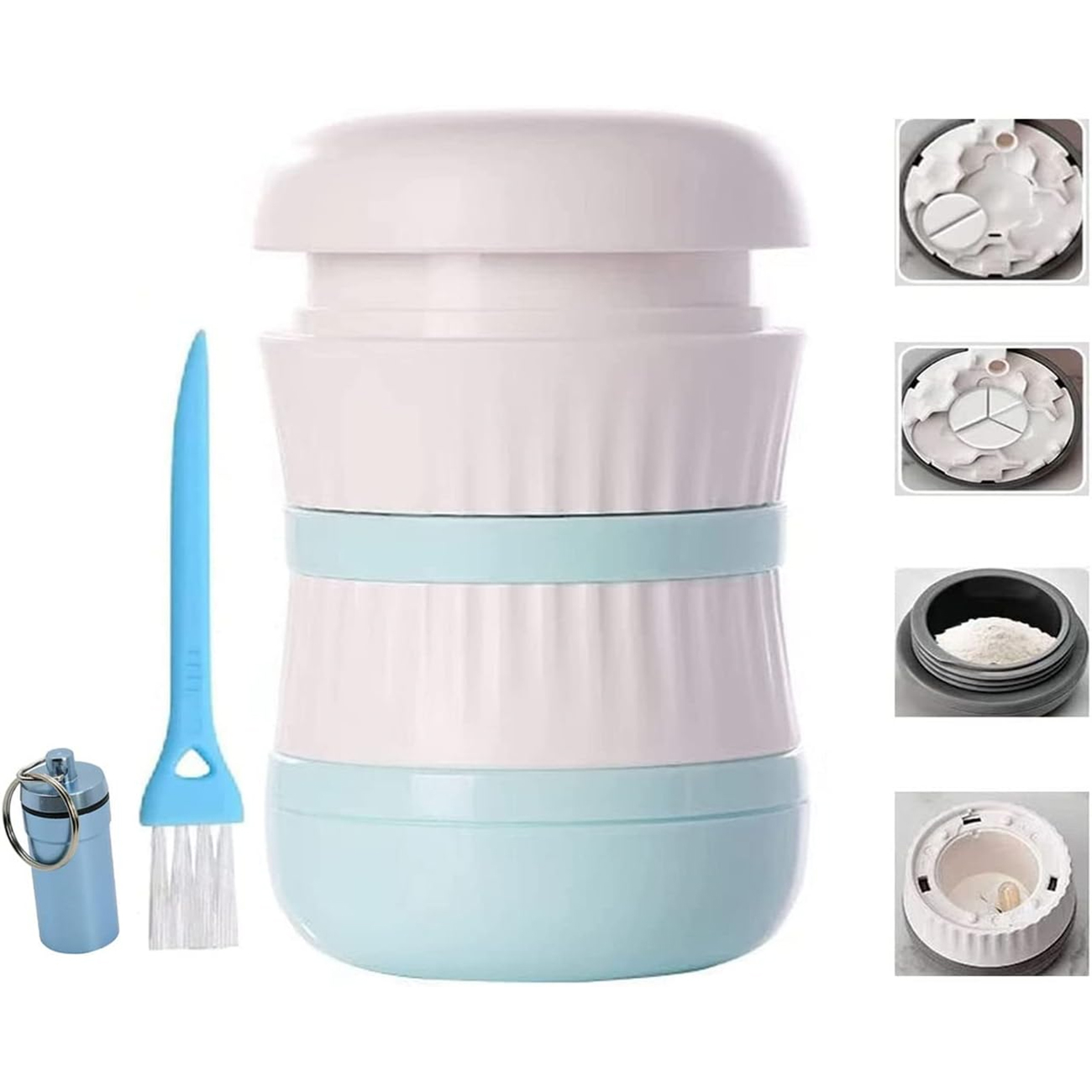 مجهز به یک آسیاب برای پودر کردن قرص | |