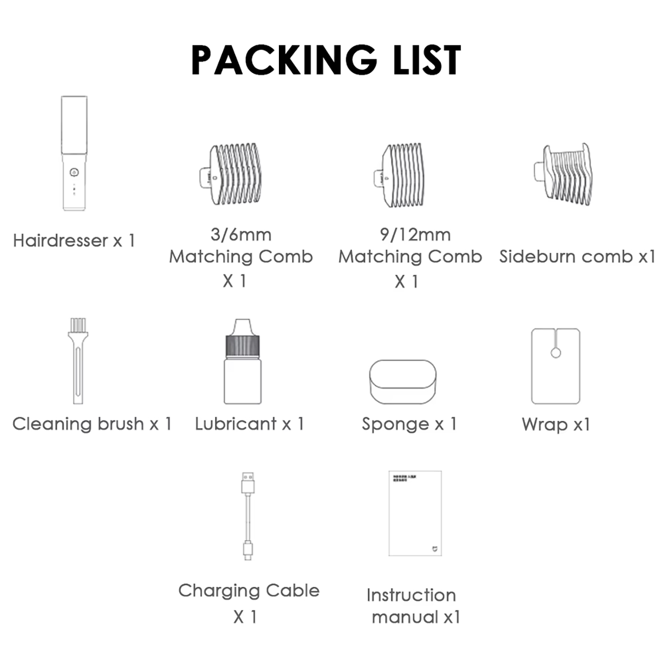 اقلام همراه | 3 سری شانه، قیچی مو، بطری روغن، برس تمیز کننده، کابل شارژ USB |