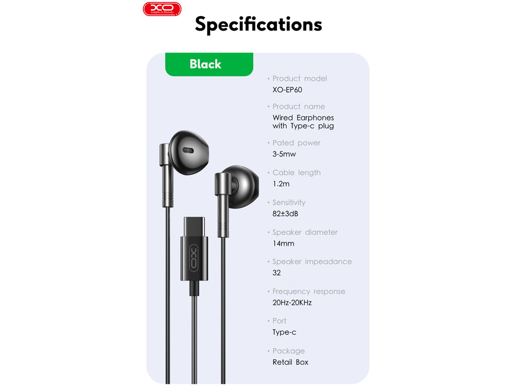 هندزفری سیمی تایپ سی ایکس او XO wired earphones EP60 Type-C