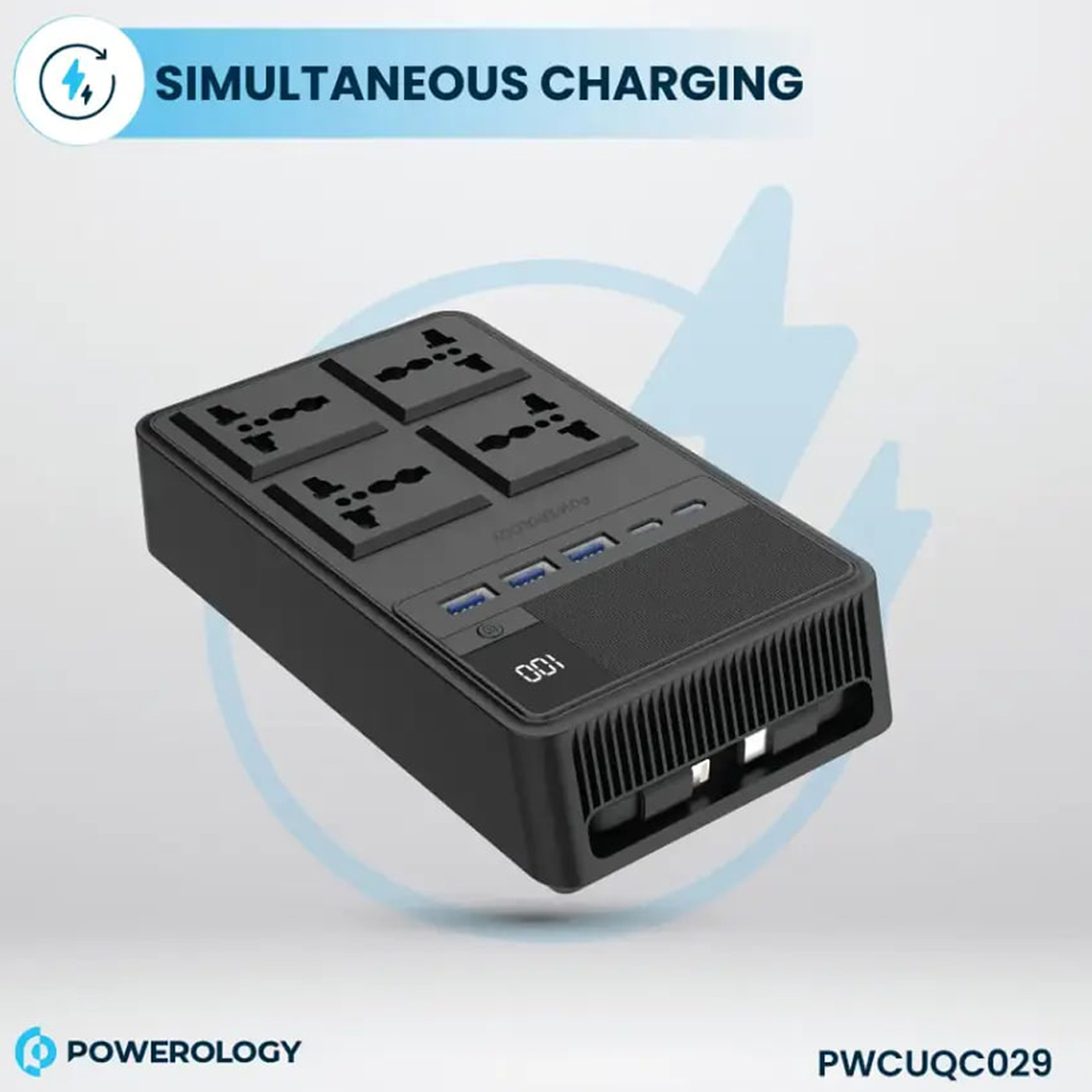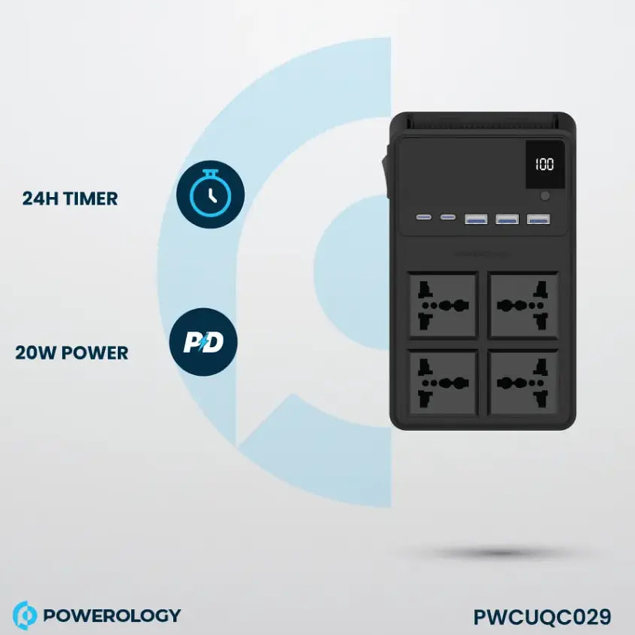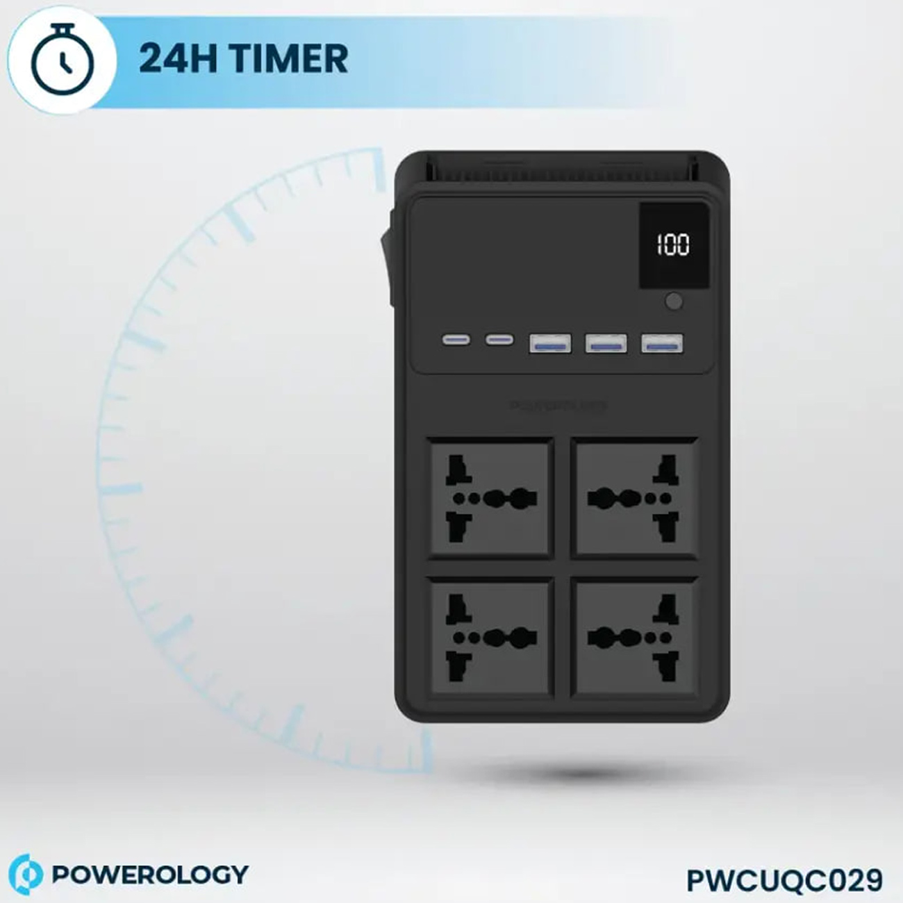 چند راهی و محافظ برق 2500 وات 4 سوکت، 3*USB و 2*تایپسی پاورولوژی PWC029