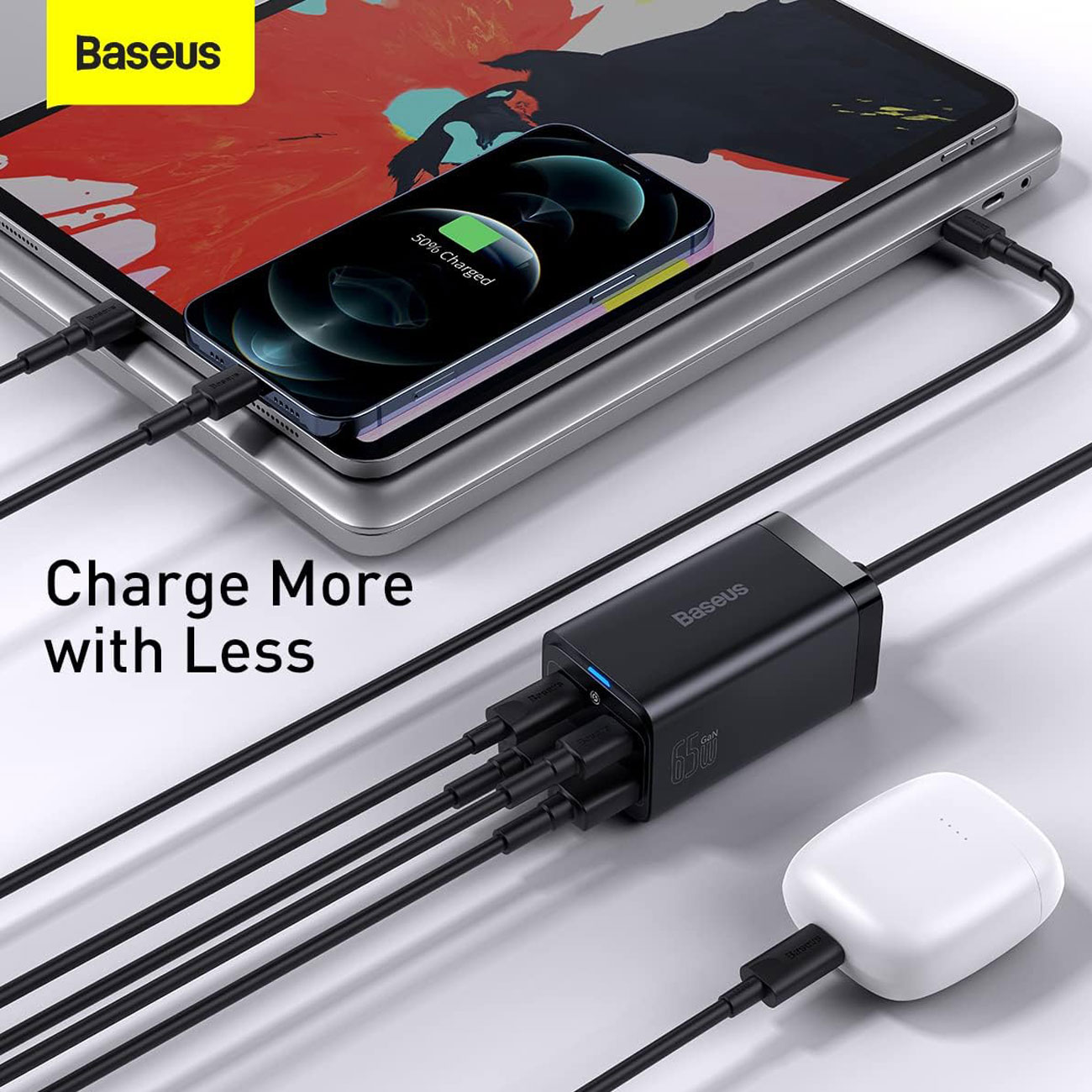 شارژر رومیزی فست 2 تایپسی و 2 یواسبی 65 وات بیسوس GaN3 Pro
