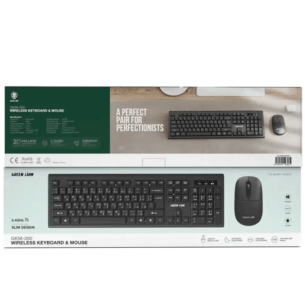 Green Lion GNGKM200WKBK Wireless Combo Keyboard and Mouse - Black