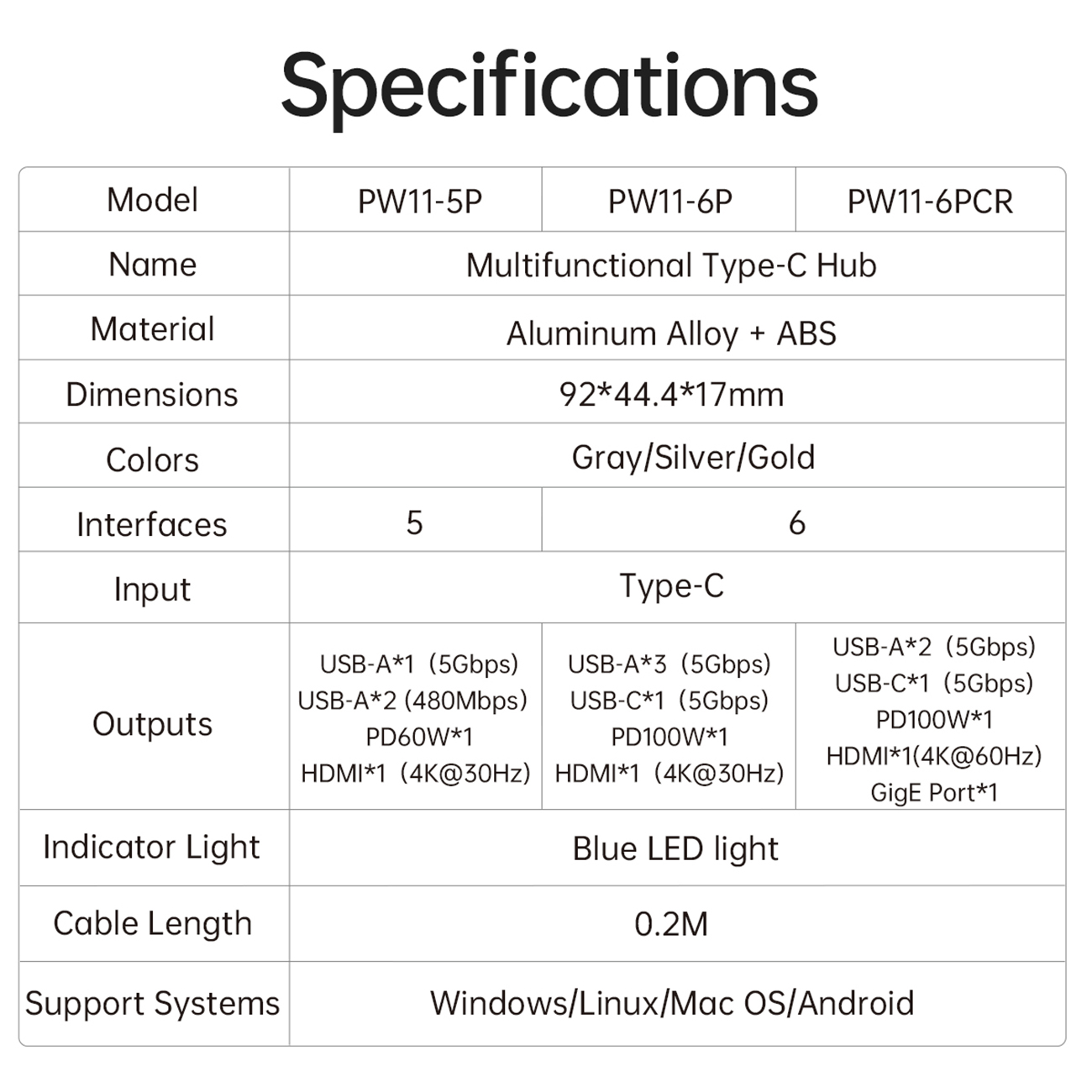ORICO-PW11-6PCR-GY-EP Type-C 6-in-1 5Gbps Multifunction Docking Station