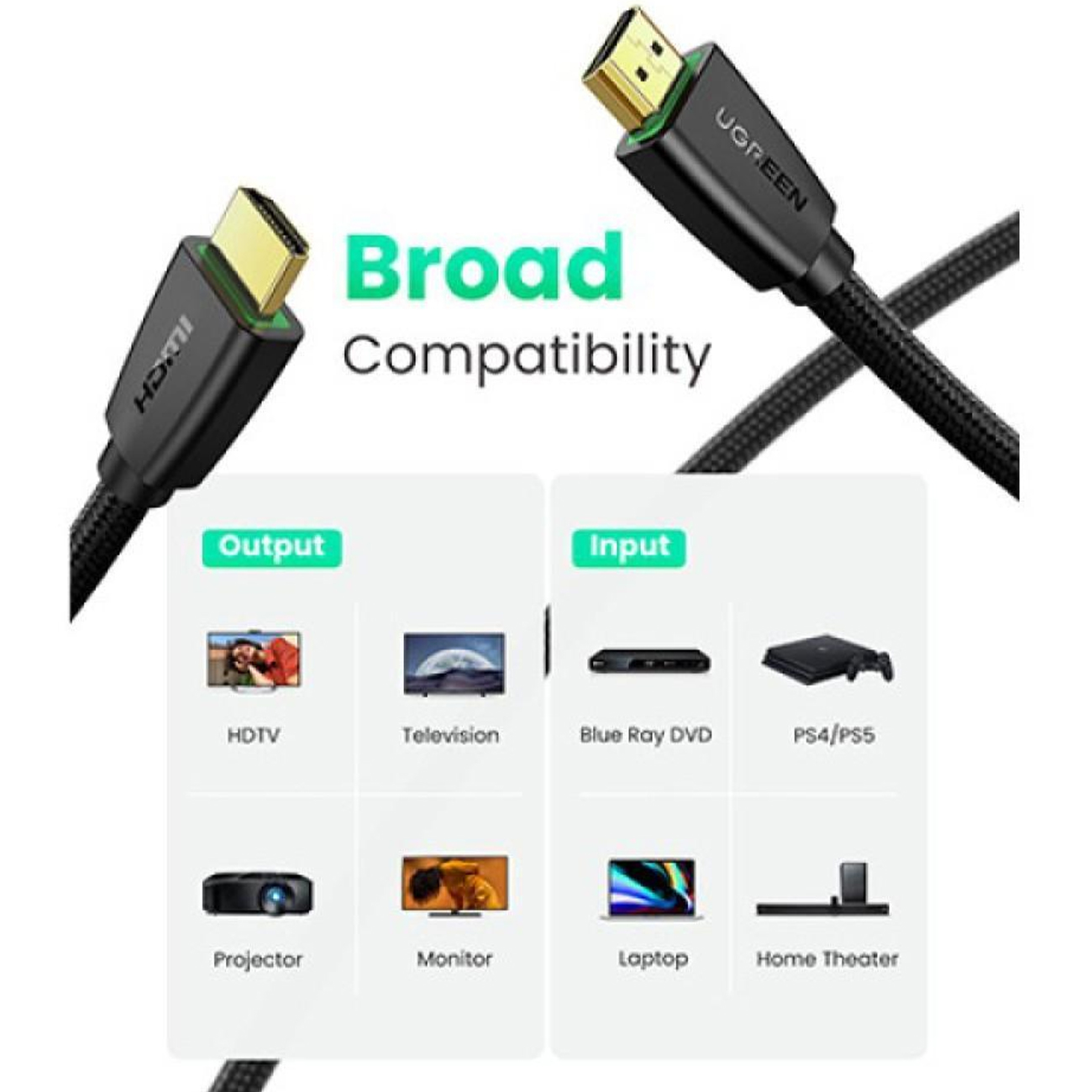 UGREEN HD118 40410 HDMI Male To Male Cable With Braid 2M