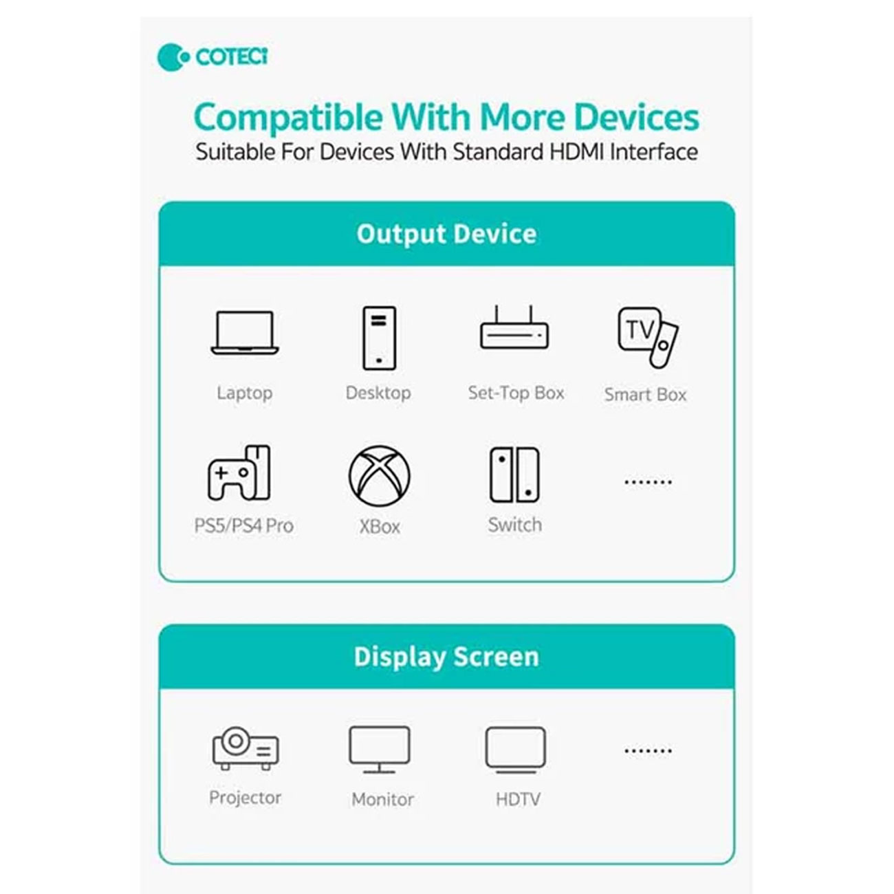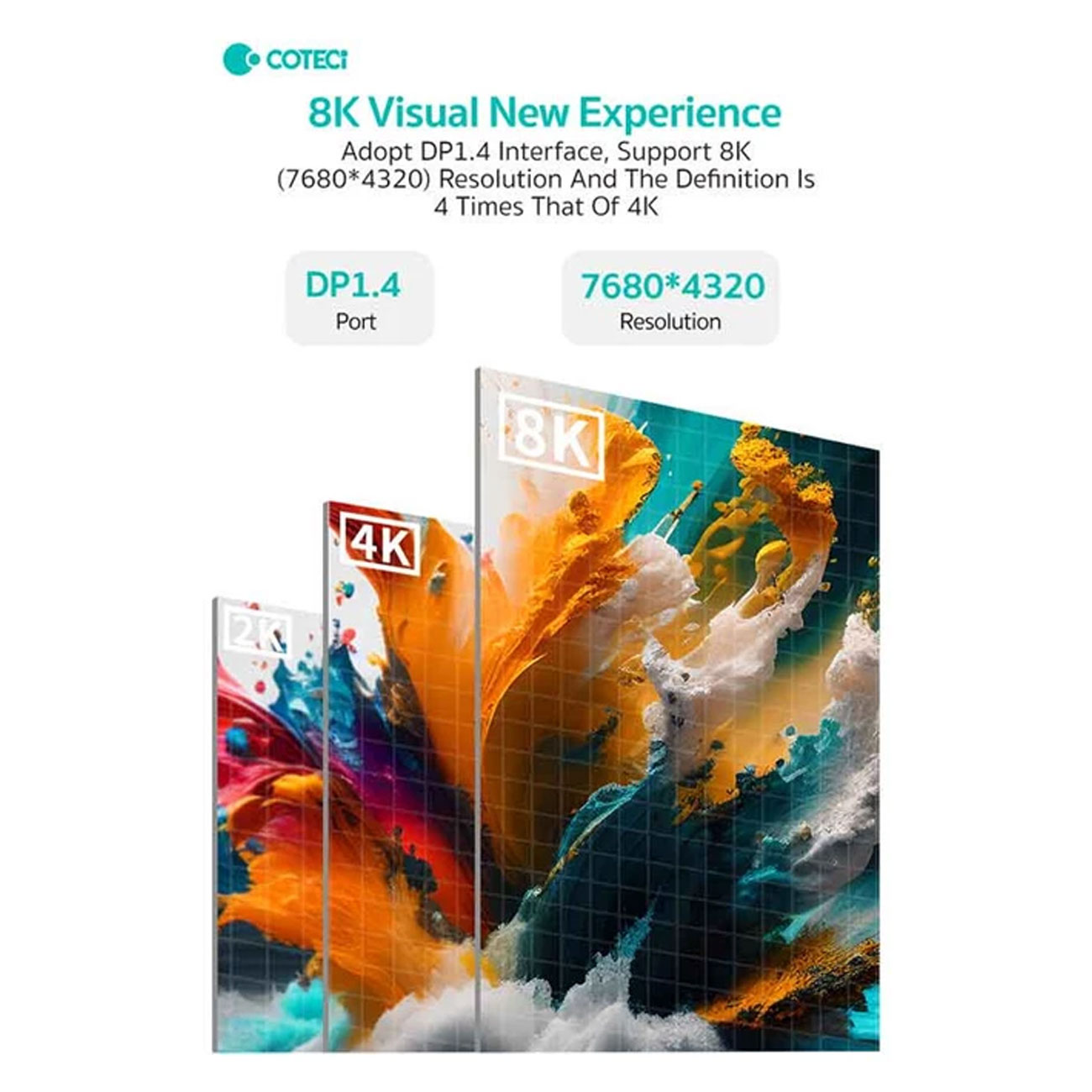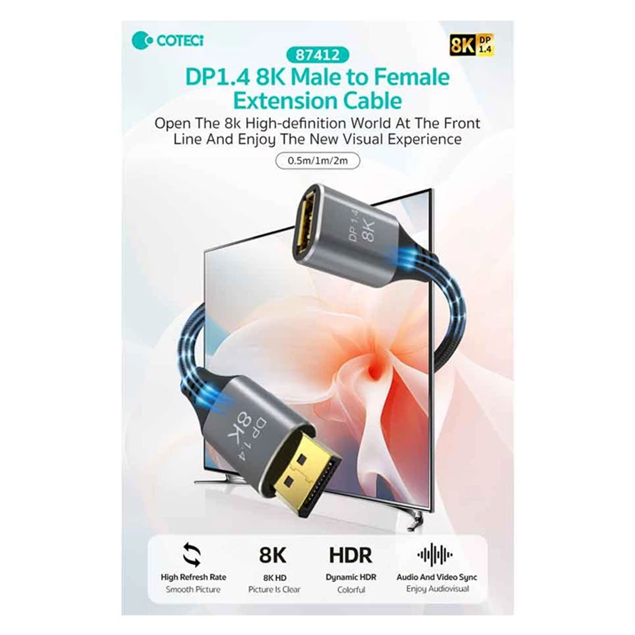 Coteetci 87412 DP1.4 8K Male to Female Extension Cable 1m