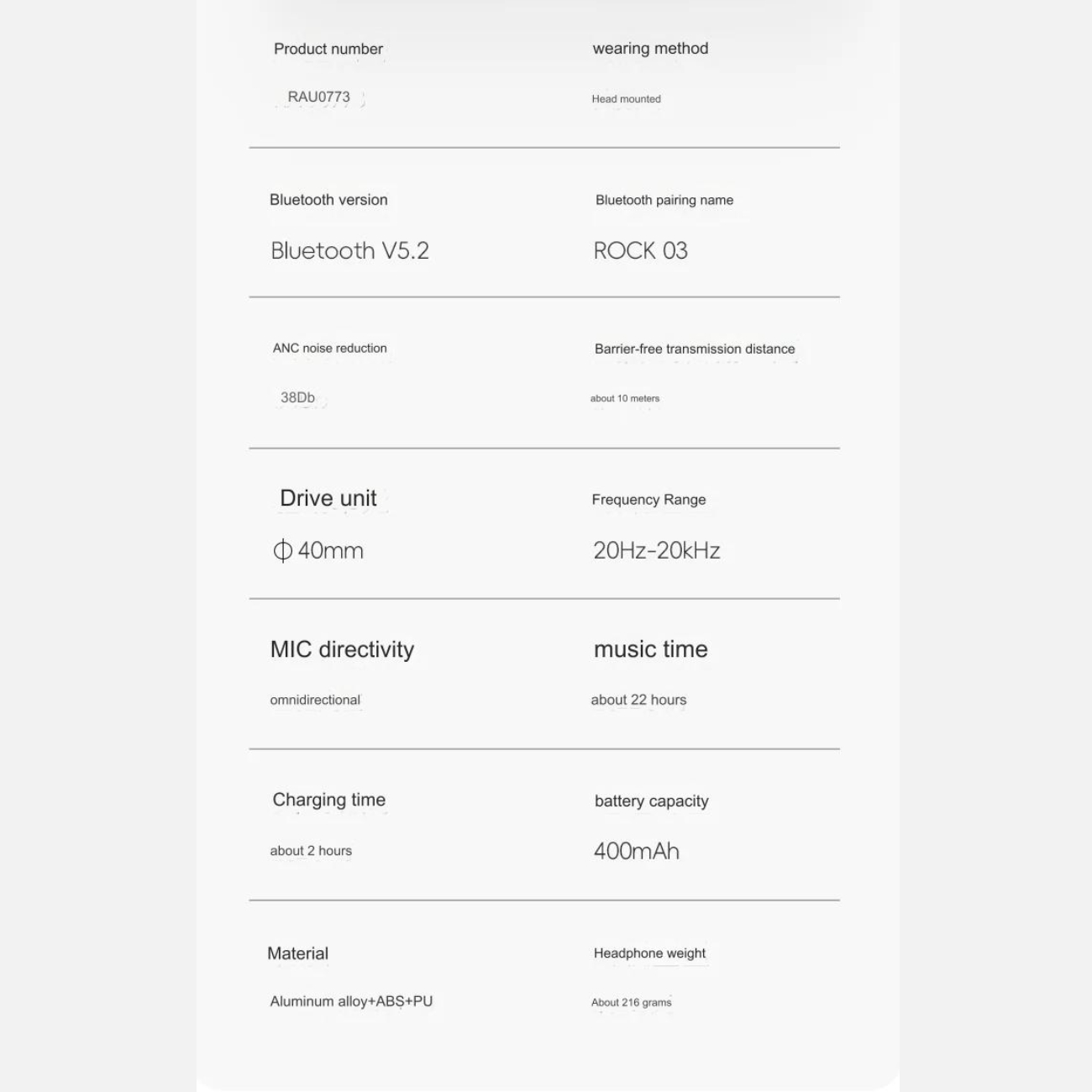 Rock 03 ANC Wireless Bluetooth Headphones RAU0773