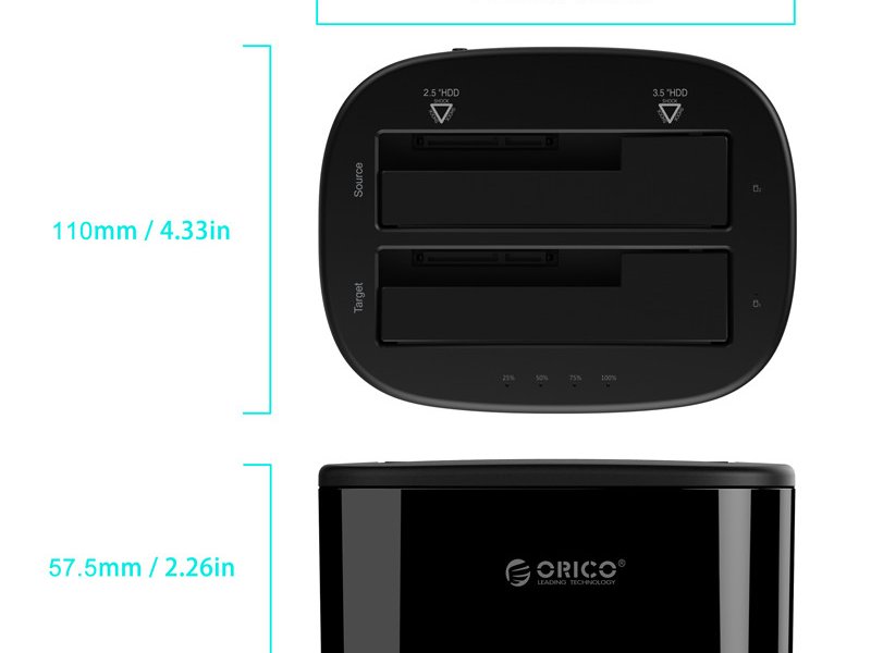 Orico 2.5-3.5 inch 2 Bay USB3.0 1 to 1 Clone Hard Drive Dock 6228US3-C