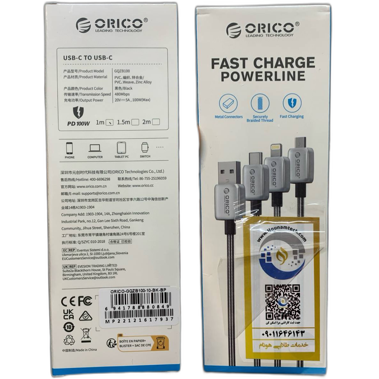 کابل سوپر فست شارژ تایپسی به تایپسی 100 وات یک متری اوریکو GQZB100-10-BK-BP