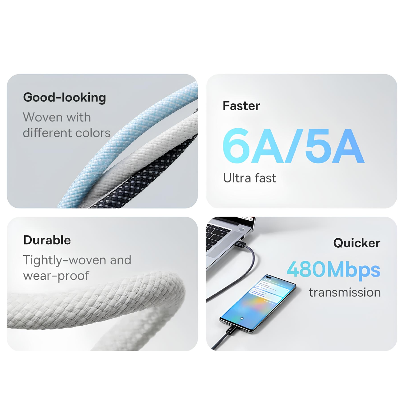کابل سوپر فست شارژ یو اس بی به تایپ سی 100 وات یک متری بیسوس P10375201212-00 CB000107