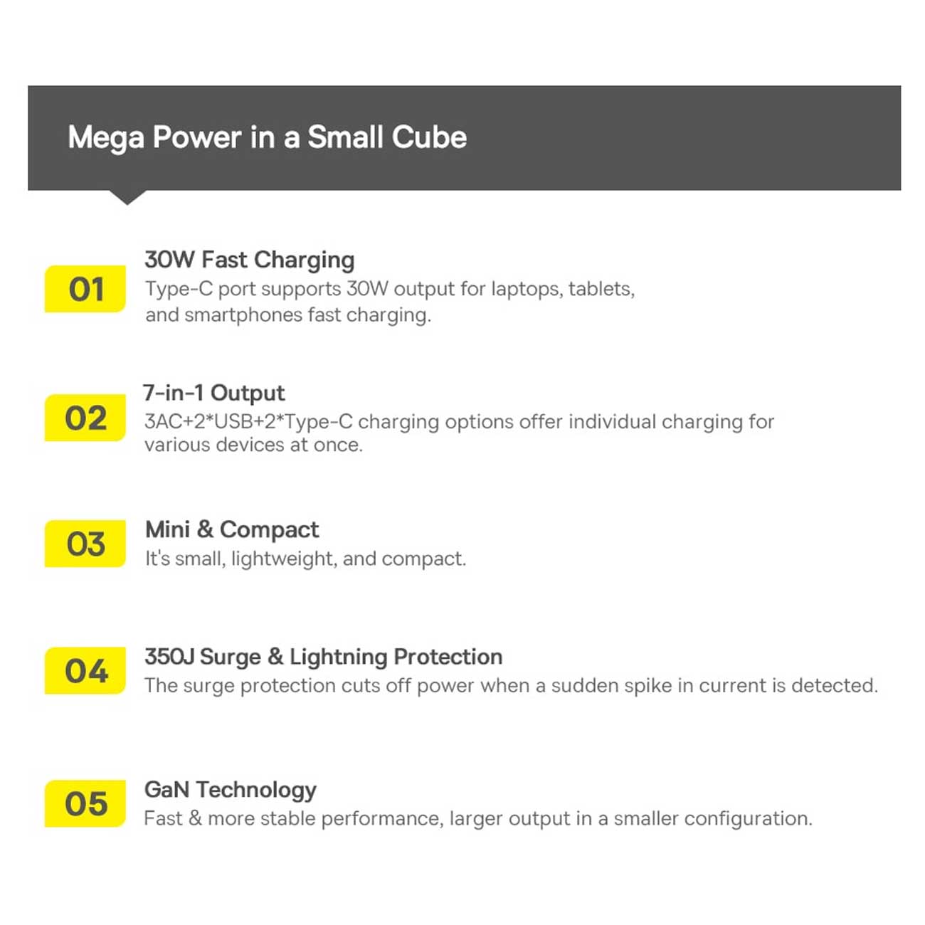 Baseus PowerCombo Cube 7-Ports Power Strip 30W E00066400117-00