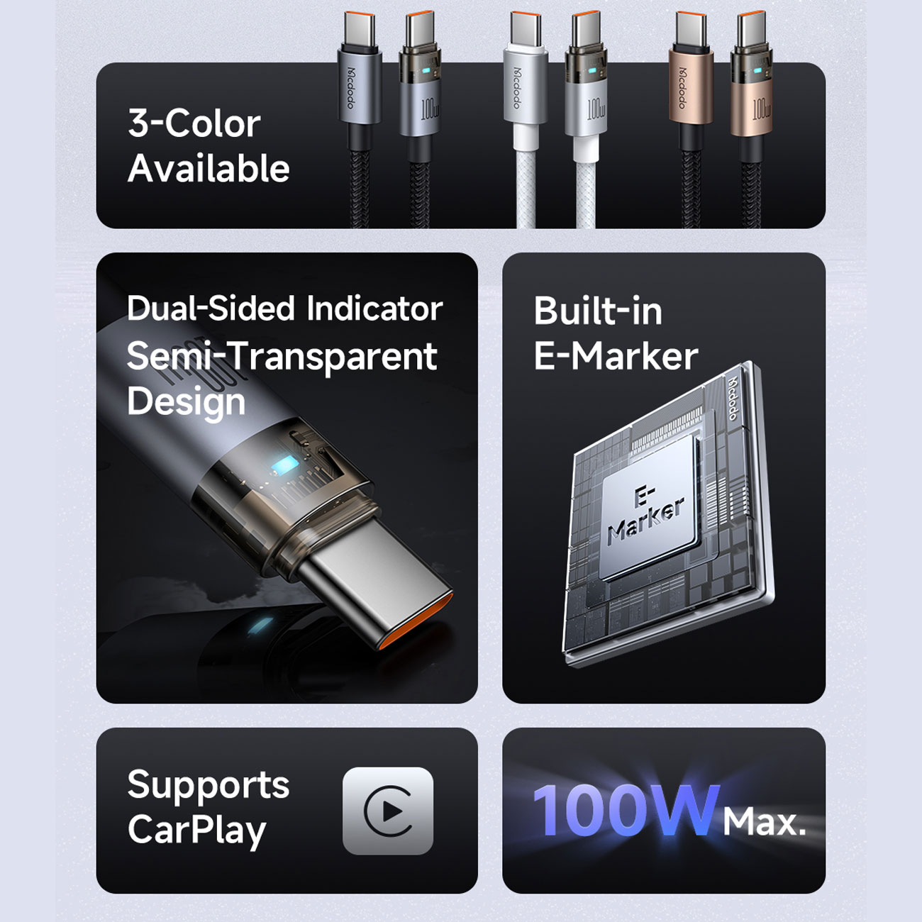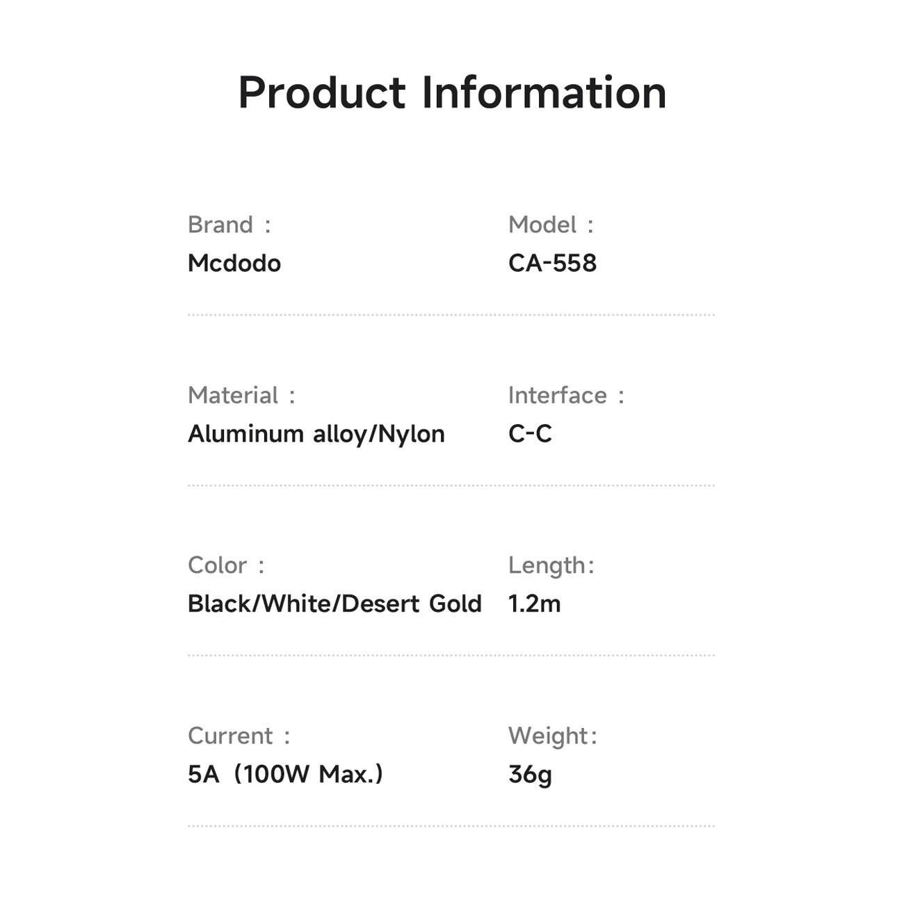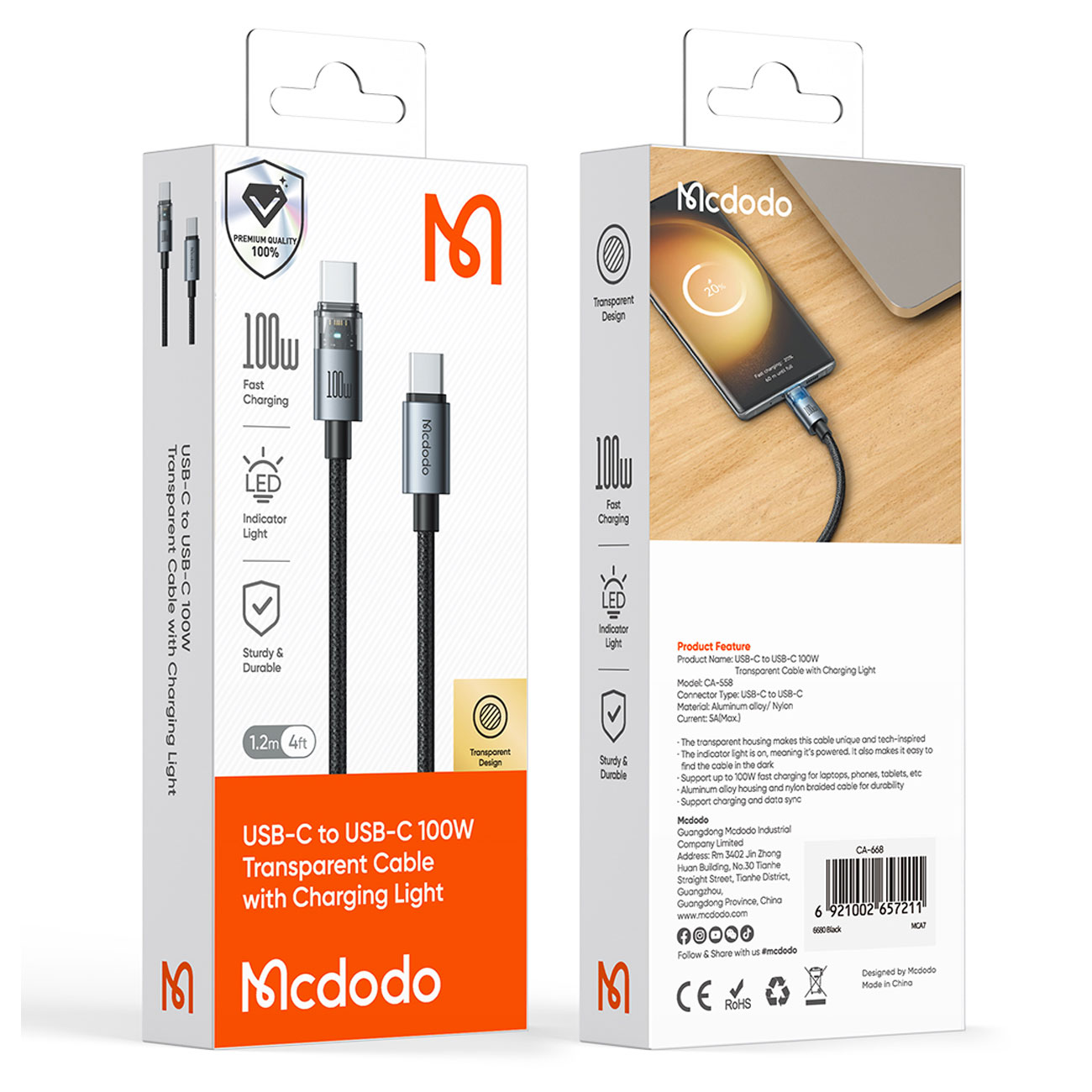 Mcdodo CA-558 USB-C to USB-C Fast Charging Cable 100W 5A, 1.2m