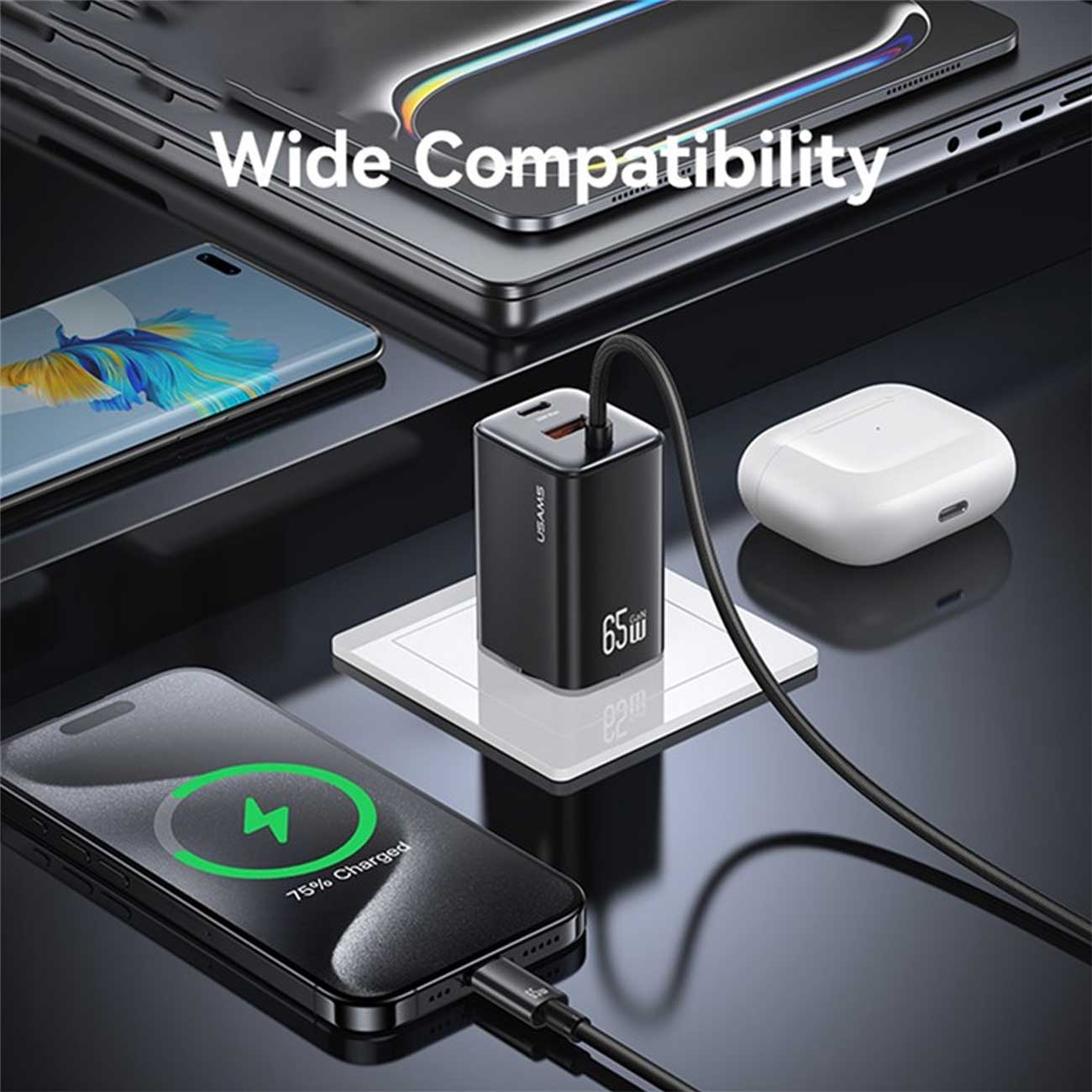 شارژر دیواری تایپ سی 65 وات با کابل شارژ تایپ سی یوسامز CC266 PD65W