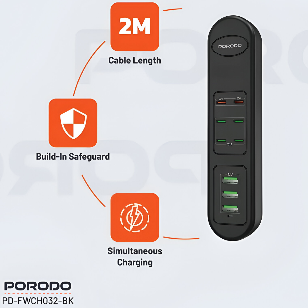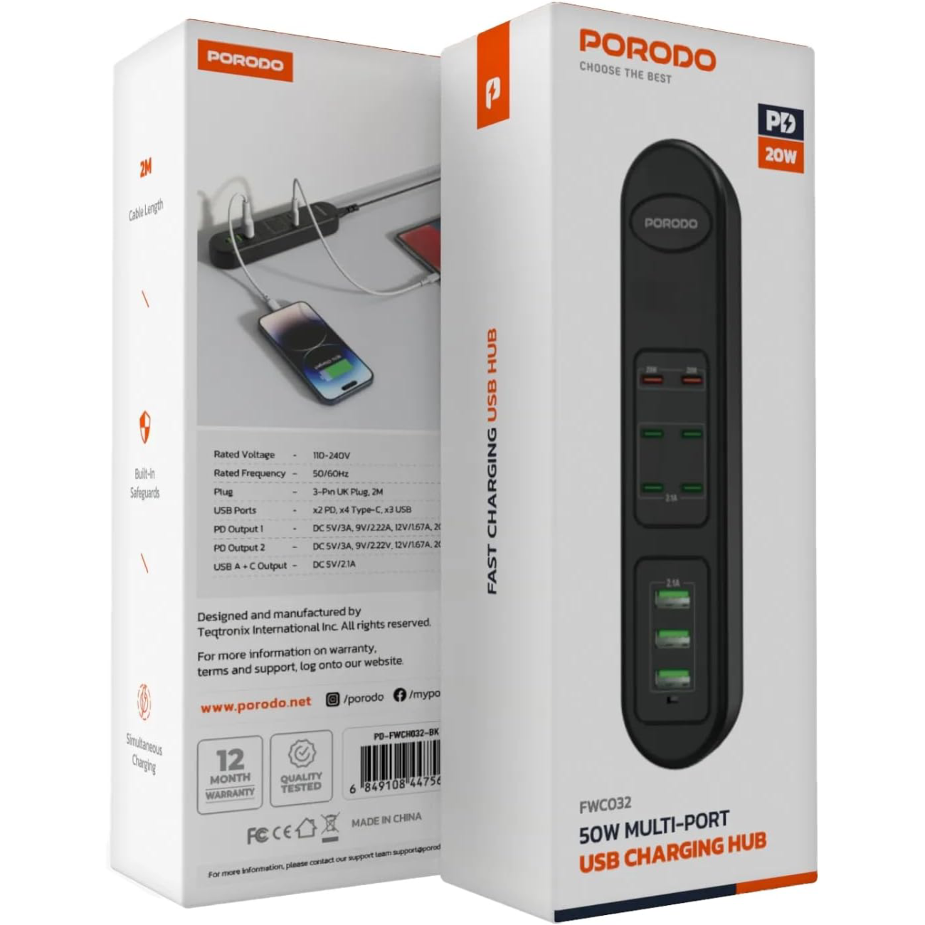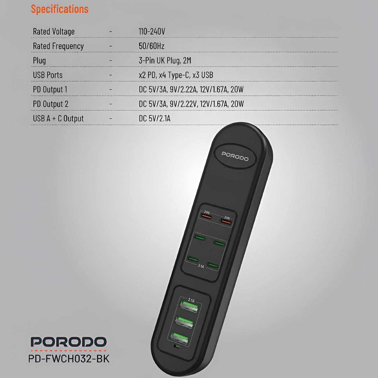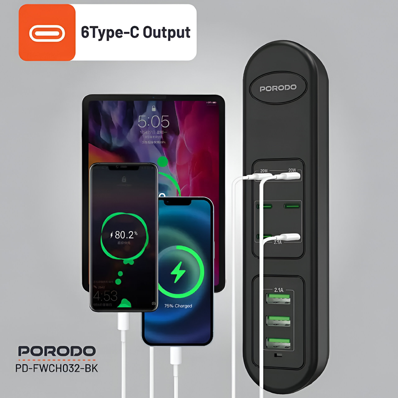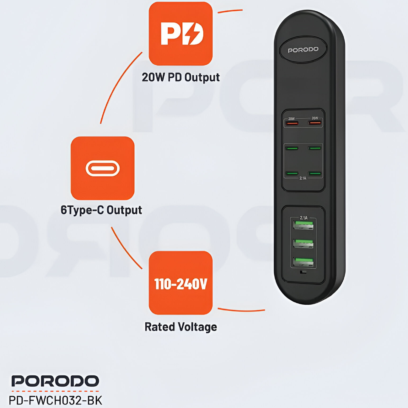 Porodo 50W Multi-Port USB Charging HUB PD-FWCH032-BK