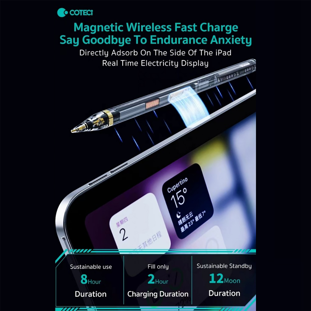 | سایر مشخصات | اندازه 16.2×0.9 سانتی متر عملکردهای مختلف برای نوشتن/ طراحی/ بازی/ مطالعه حالت استند بای 12 ماه لمس صفحه بدون نیاز به دستکش دارای نمایشگر بلوتوث حلقه فلزی القایی سطوح سنسور فشار شیب خلاقیت و ظرافت در کار بدون نیاز به راه اندازی طراحی ارگونومیک وراحت دارای نوک بسیار روان، حساس و دقیق |